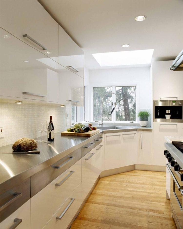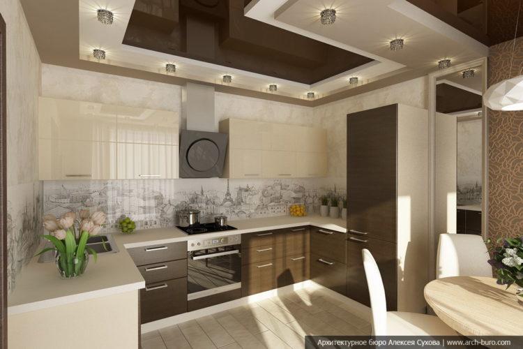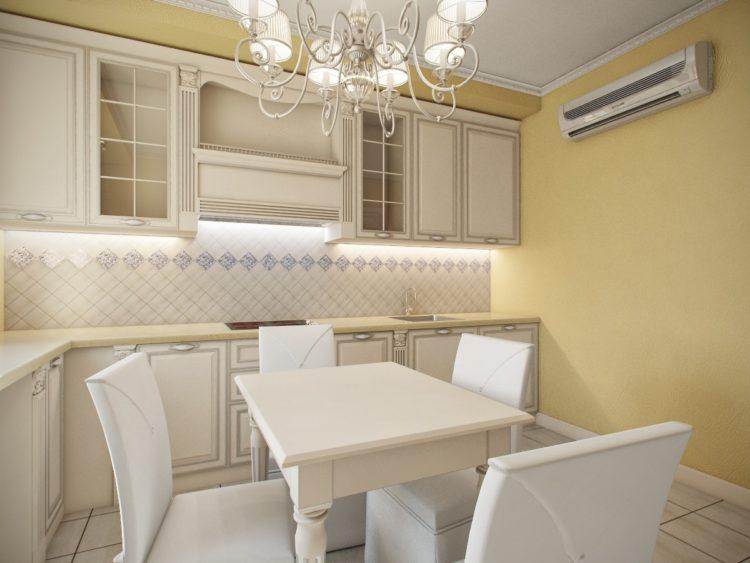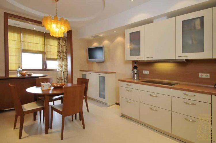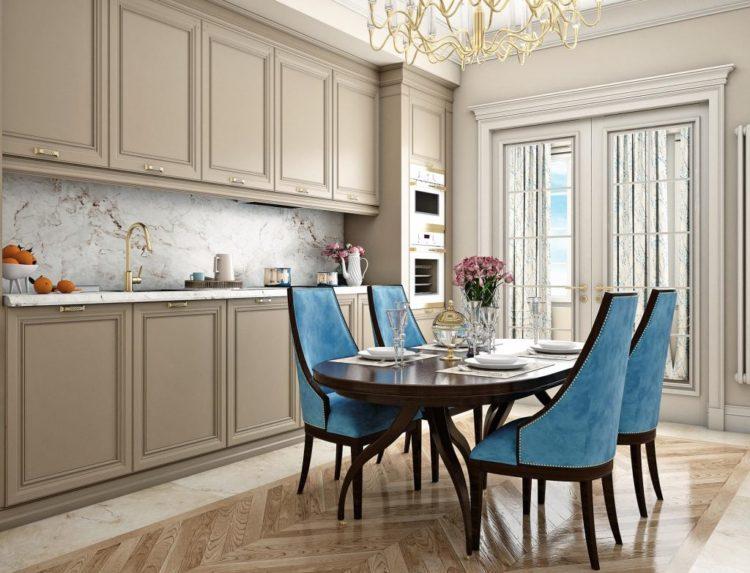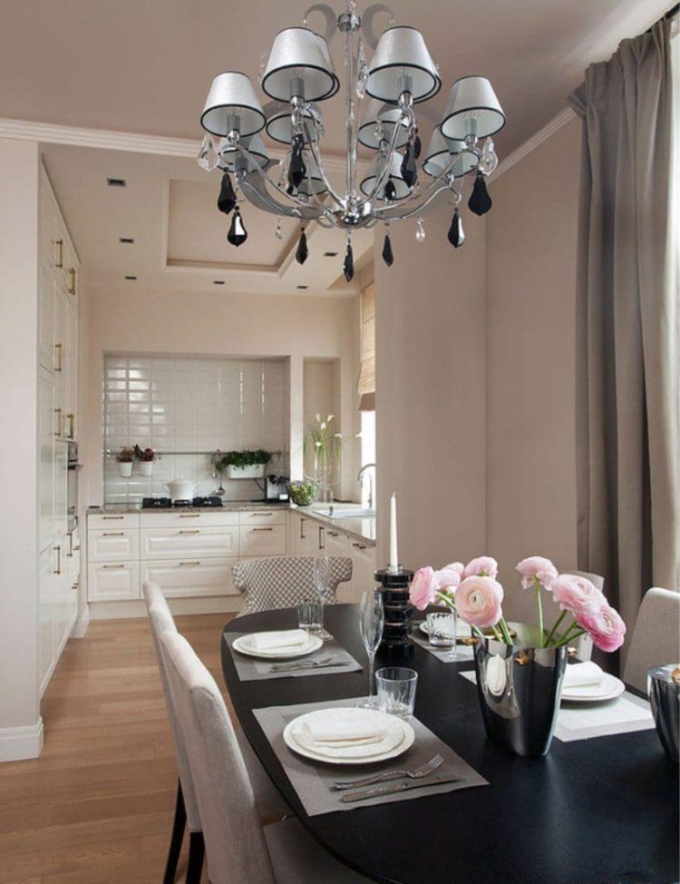 Una opción estricta que es adecuada para una sala de reuniones o una cocina de color crema. Al mismo tiempo, se pueden rellenar tonos de gris, tanto en ropa de cocina como en otros accesorios. Lo principal es que todo debe estar equilibrado en los mismos colores.