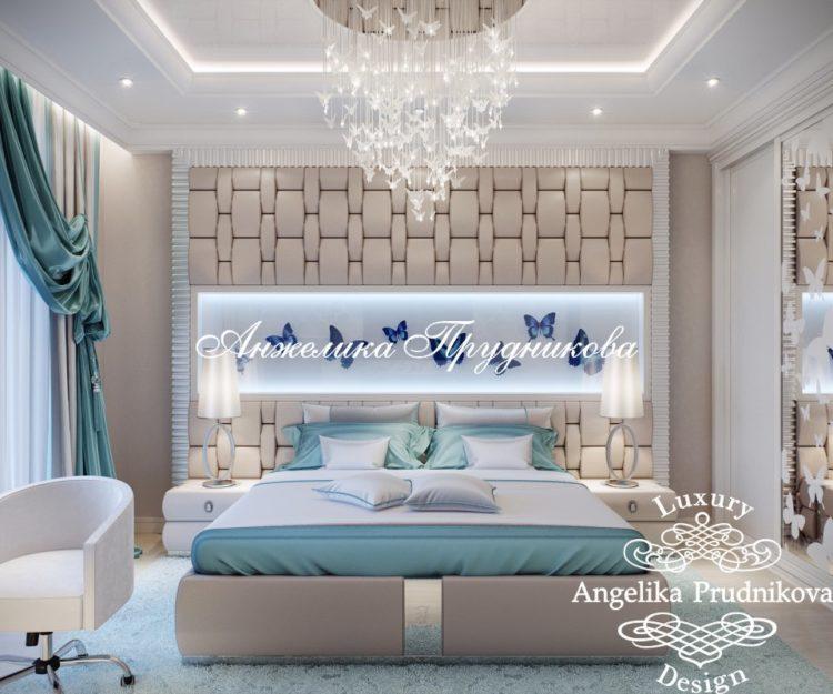 En combinación con el azul, proporcionará a la habitación elegancia adicional. Al mismo tiempo, este color habla del sentimiento de confianza de su dueño.