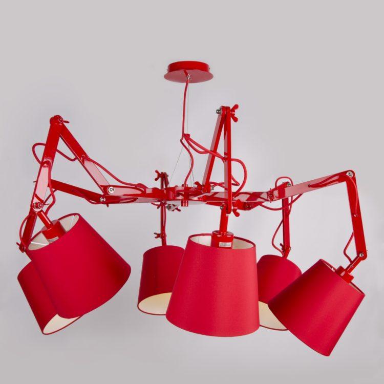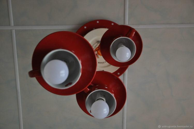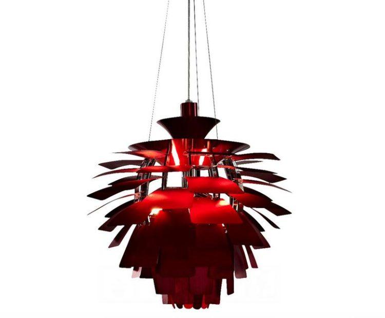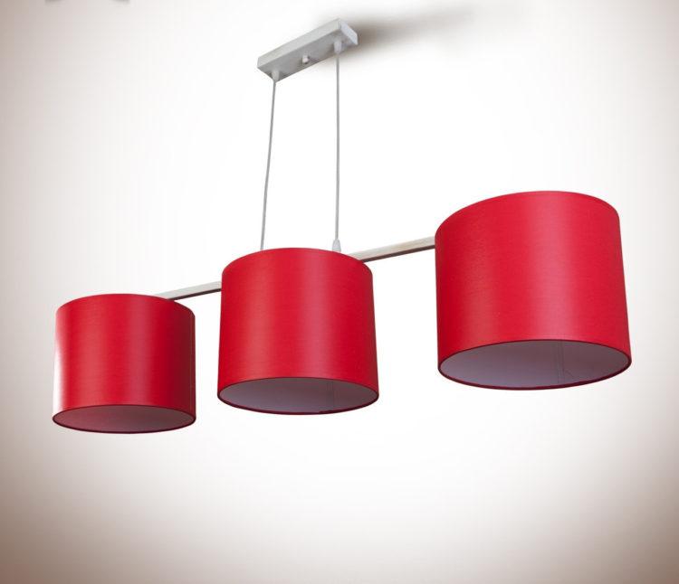 Un candelabro rojo en la cocina creará un ambiente especial. Al mismo tiempo, es deseable que la habitación aún tenga un tono de color similar.
