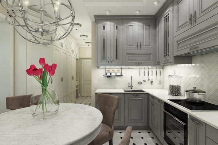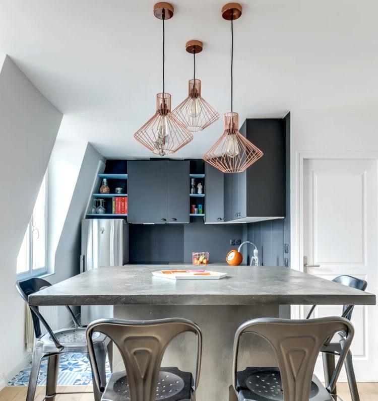 Un color gris equilibrado en el candelabro permite que la lámpara se adapte a cualquier interior simple.Ideal para cocinas con encimeras de mármol.