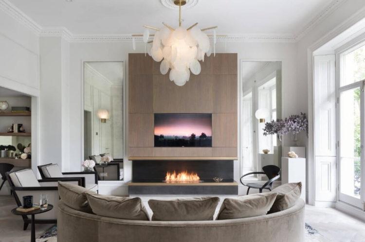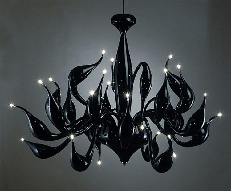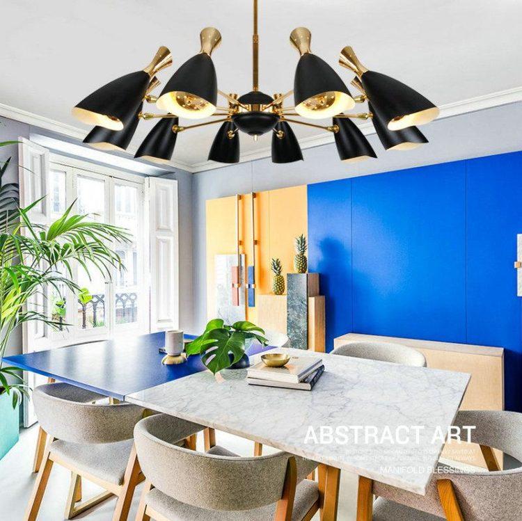 La lámpara de araña sobre la mesa de comedor en el estilo oscuro creará el entorno perfecto en la habitación creada en el estilo Art Nouveau.