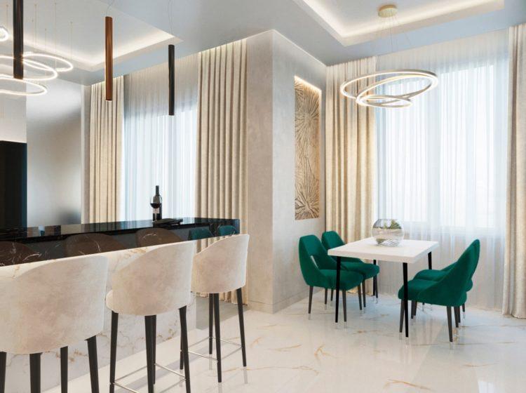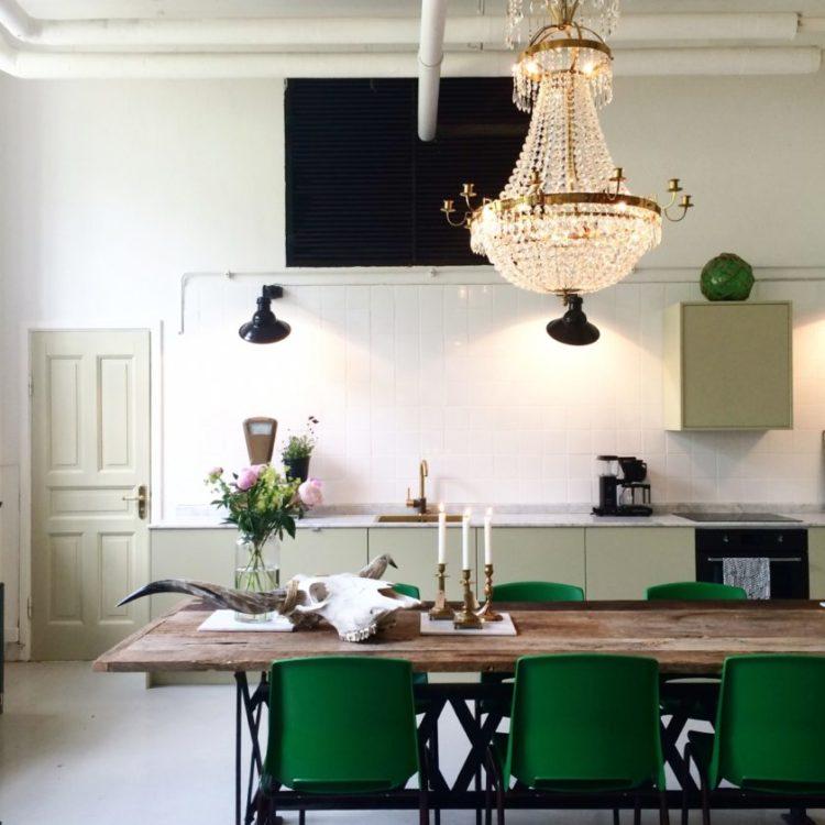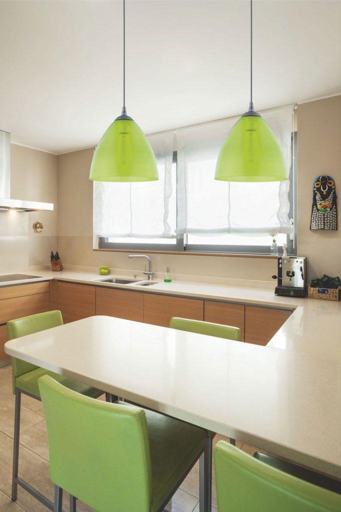 - Luces de techo verdes en la cocina (ejemplos de fotos)