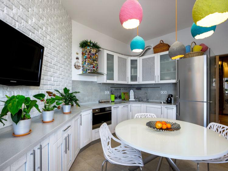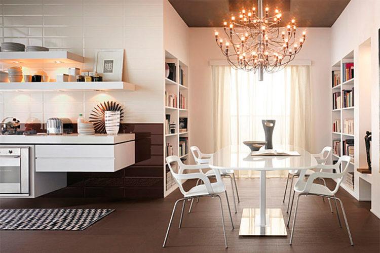 Si usted es el propietario de una cocina grande, no se limite al hermoso cristal volumétrico o simplemente a las opciones de vidrio para candelabros. Complementarán la habitación con una elegancia especial.