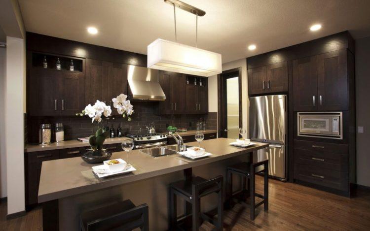Los candelabros marrones para la cocina, cuyas fotos puede encontrar fácilmente en la vasta red global, son ideales para habitaciones con muchos muebles en un color clásico. Hay muchas variaciones de tales lámparas.