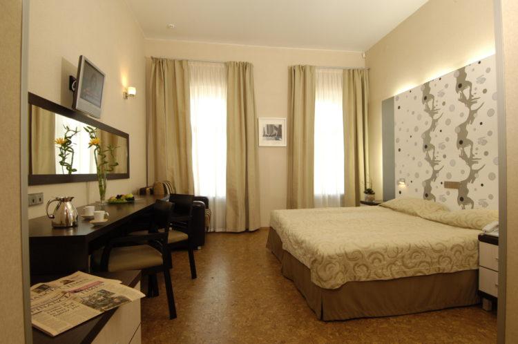 Uno de los colores clásicos más populares para el diseño de habitaciones, diseñado en un solo color. El diseño de la habitación es de 12 metros cuadrados (la foto lo muestra bien), es tranquilo, lo cual es un atributo deseable para un lugar de vacaciones.