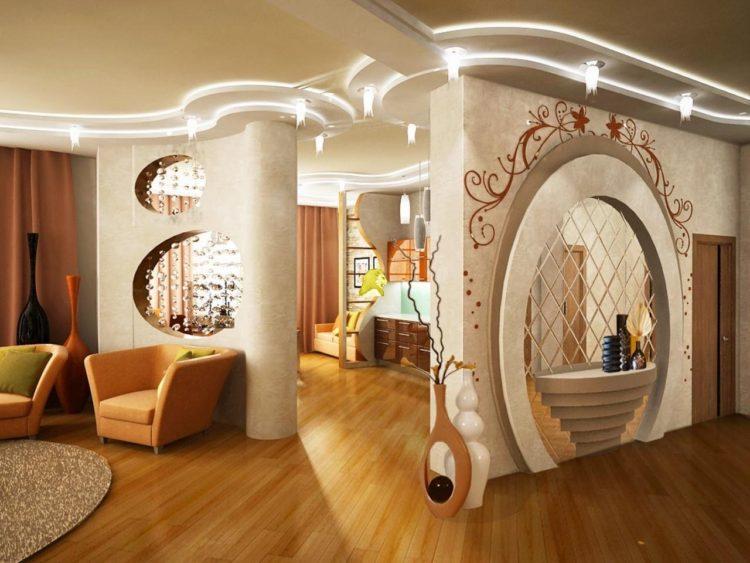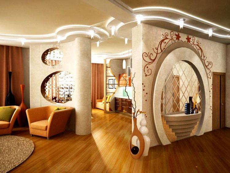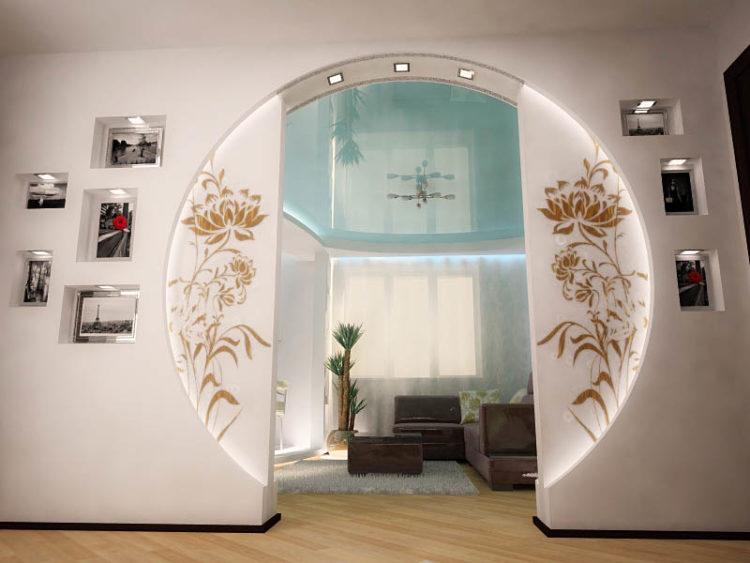 Una tarea difícil es el diseño de aberturas interiores en el corredor y otras habitaciones en un departamento o casa privada. Muchas personas prefieren hacer un arco en el interior del pasillo o sala de estar, decorando así las aberturas. Hay varios tipos de arcos, pero el más popular de paneles de yeso. Esto se debe al hecho de que se pueden decorar de cualquier manera, mientras se hacen pequeños huecos, que simultáneamente servirán como estantes.