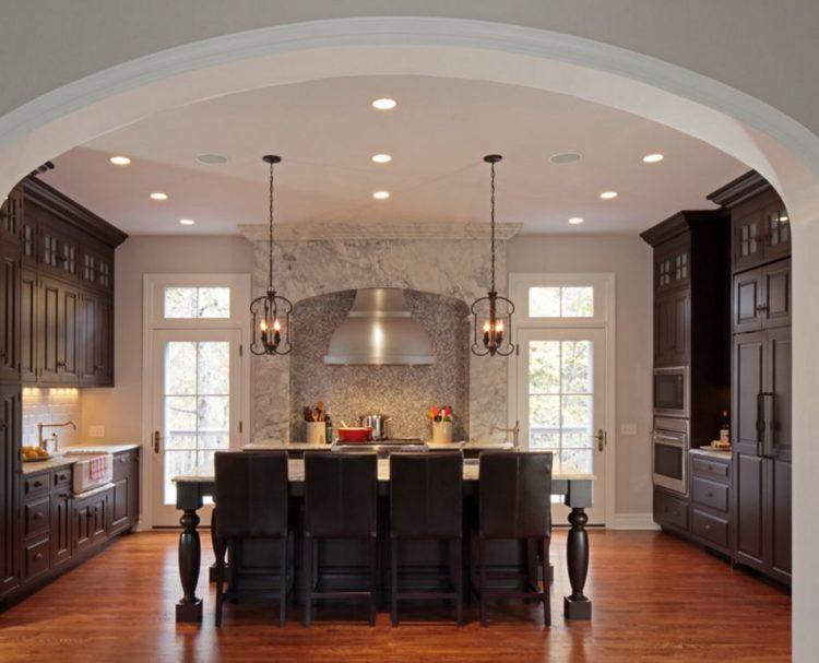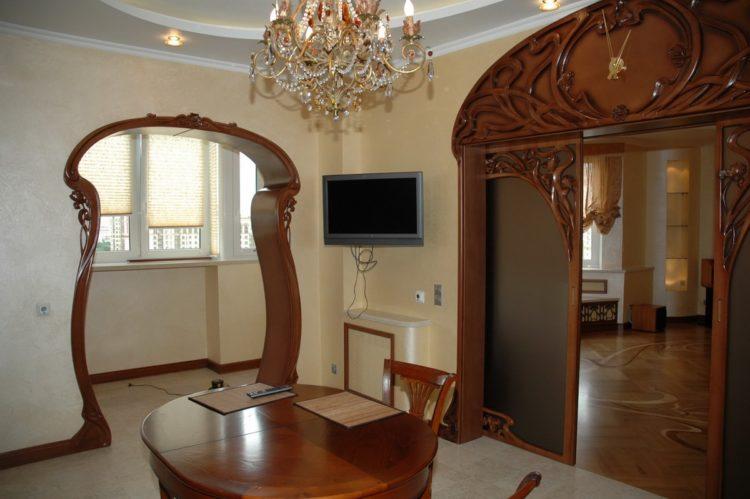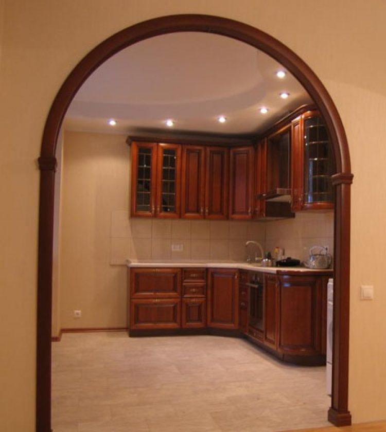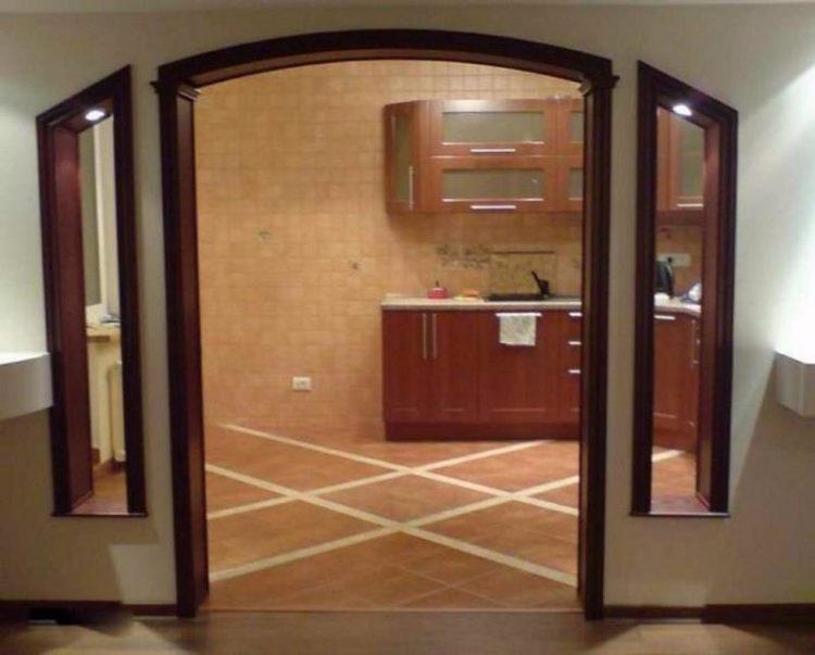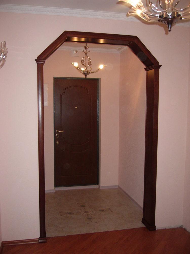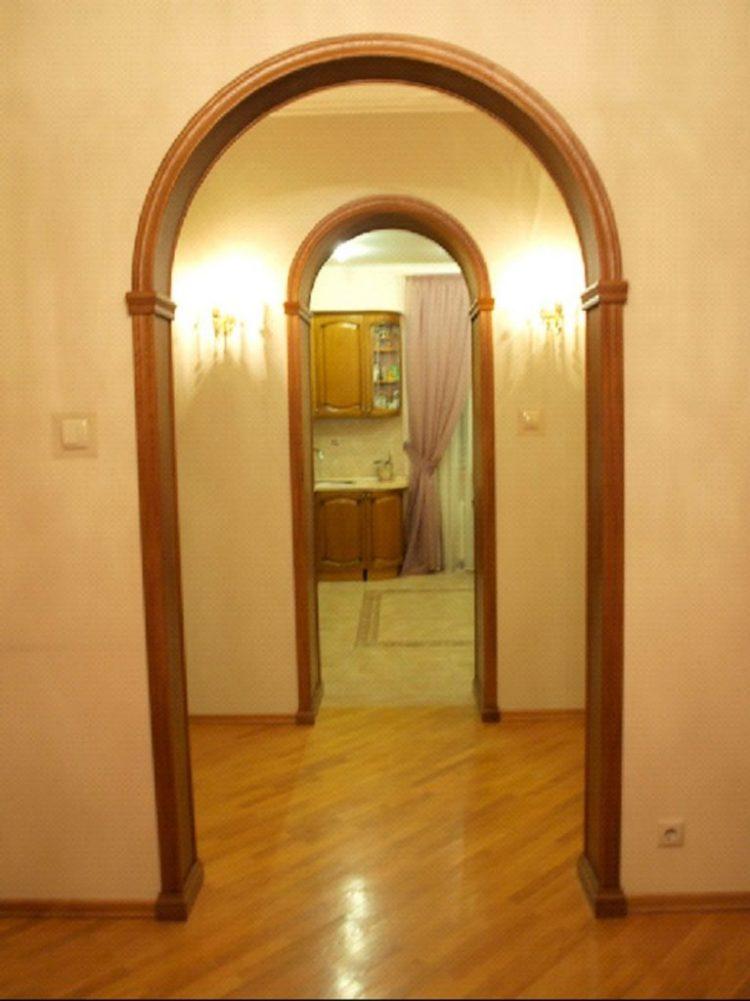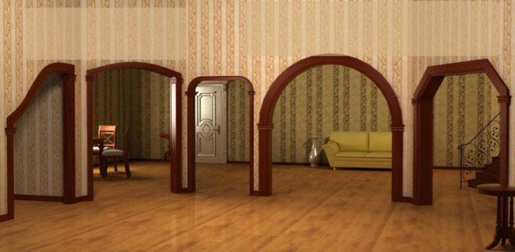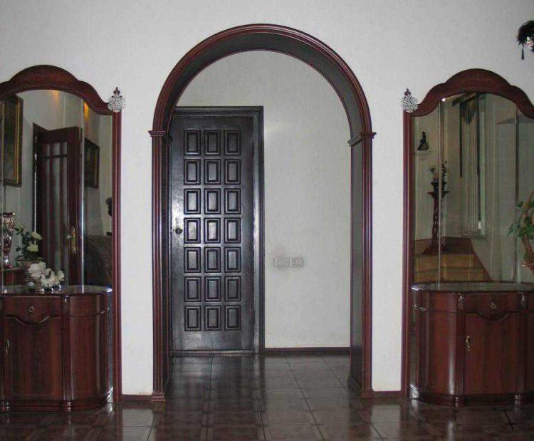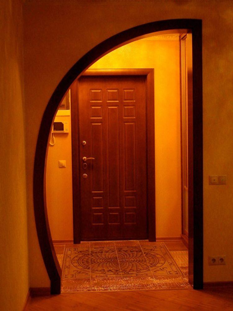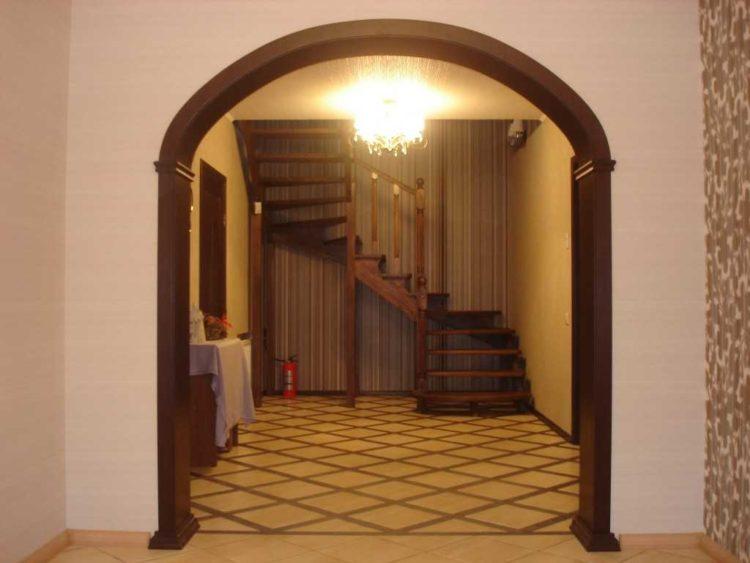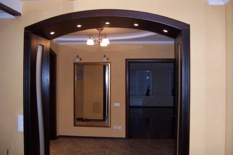 Puede diseñar arcos de puerta (fotos y diseño en la selección) en color oscuro. Los arcos interiores oscuros en el apartamento se verán bien si se trata de una habitación grande.