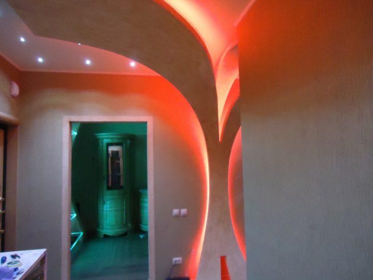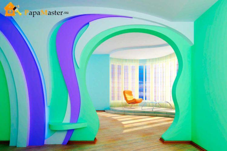 Lo principal es que un arco o un semi-arco hecho de paneles de yeso no ocupa mucho espacio, no oscurece la luz de la habitación y se adapta al interior general de la habitación. Además, puede hacer un arco en cualquier combinación de colores o al mismo tiempo combinar varios colores, que se verán inusuales y elegantes. Qué otros arcos hay interiores confeccionados, fotos y opciones interesantes, puede ver en la selección.