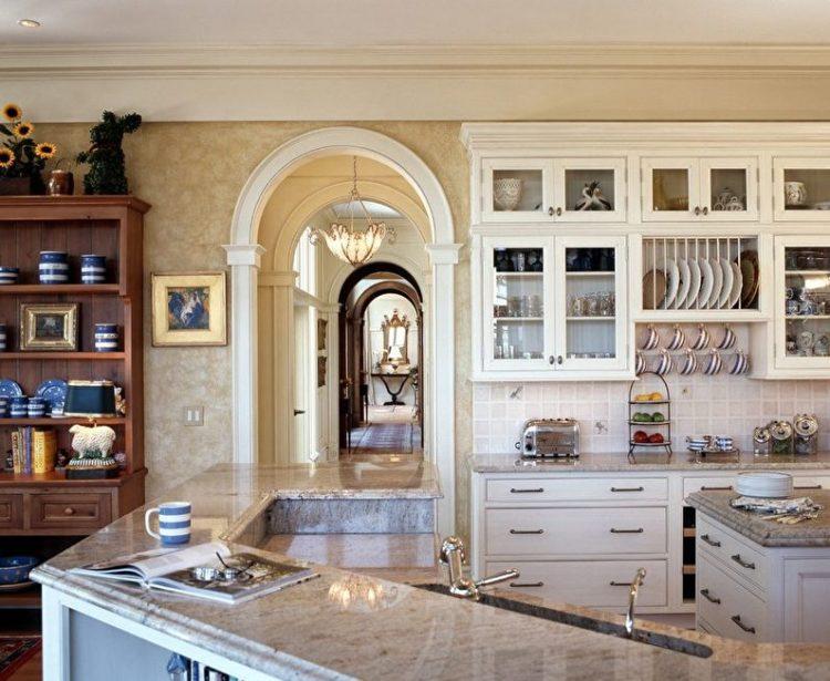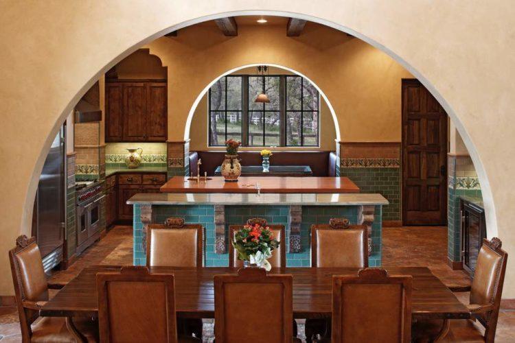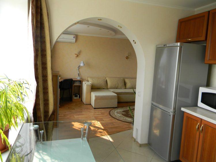 Hermosos arcos o semi-arcos en la cocina o el salón se pueden hacer en diferentes estilos y colores. Los arcos en verde se ven bastante interesantes, mientras que puedes elegir tonos de oscuro a claro.