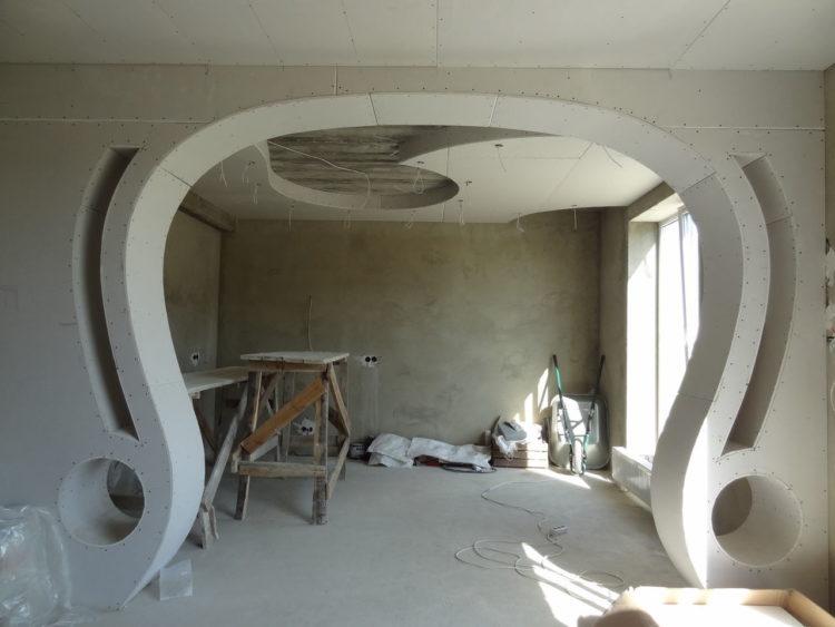 Con la ayuda de arcos de paneles de yeso, puede conectar y dividir las habitaciones en un apartamento o una casa privada. El arco interior de cartón yeso se puede hacer en cualquier estilo y decorado de una manera completamente diferente. Puede hacer un arco de placas de yeso con sus propias manos, y si desea crear una estructura más compleja, es mejor usar los servicios de un maestro.