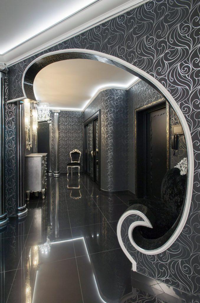 Algunas personas quieren crear una puerta haciendo un arco negro de paneles de yeso. Esta opción puede parecer bastante elegante, pero es importante que la habitación sea grande, y se recomienda hacer un arco con aberturas para que haya más luz.