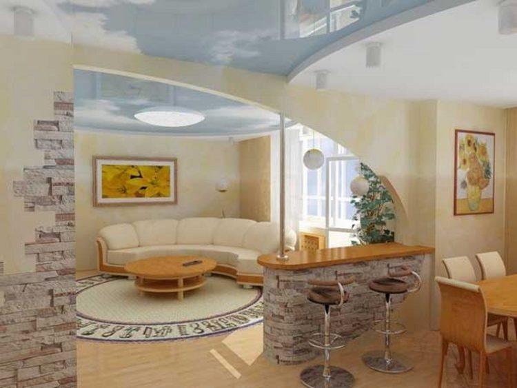Se puede hacer un hermoso semi-arco o arco a la sala en color claro. Tales arcos de paneles de yeso, cuyas fotos encontrará a continuación, siempre se ven frescos y no ocultan visualmente el espacio en la habitación.