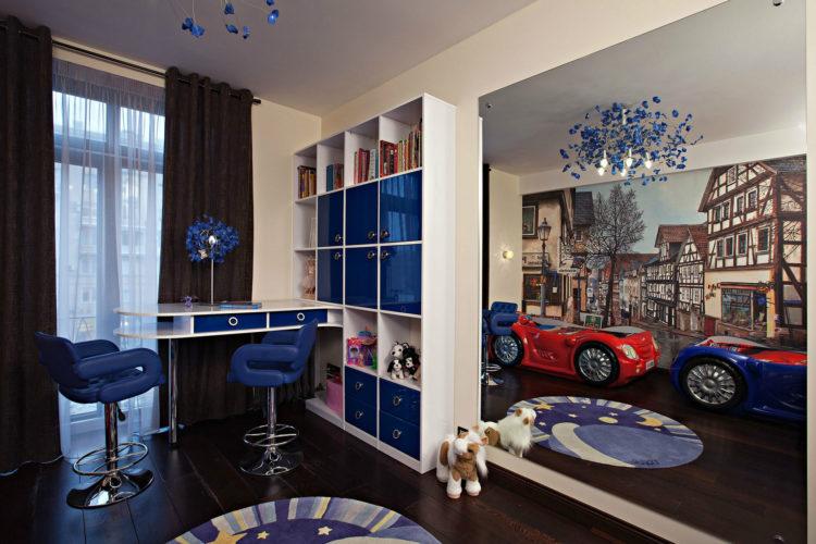 Muy a menudo, los padres eligen el azul.En la foto puedes ver cómo se ve la guardería para 2 niños en azul.