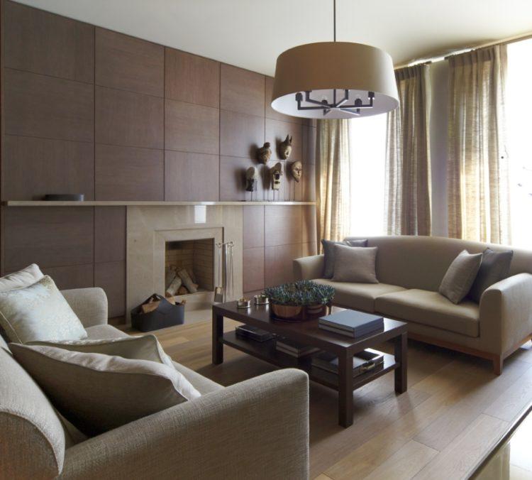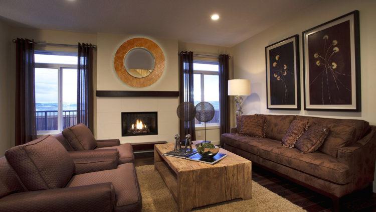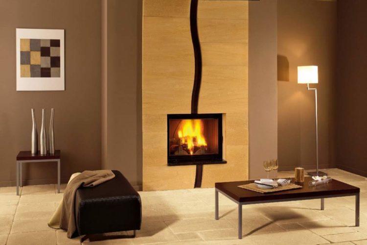El color marrón se verá bien en una casa de campo. Tales tonos son lo más cercanos posible al acabado natural, por lo que incluso si decide obtener una chimenea artificial, el color marrón creará la ilusión de usar madera.