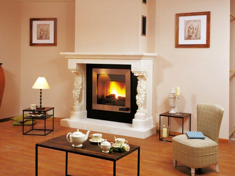La chimenea, cuya foto ves a continuación, es un clásico moderno. La chimenea decorativa blanca es adecuada para art nouveau, minimalismo y art deco.