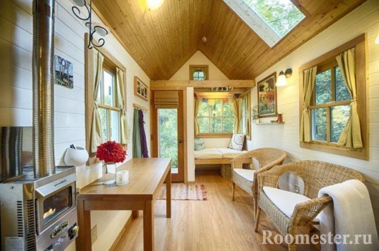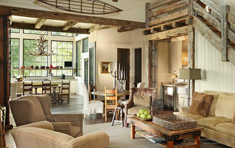 El interior de una casa de campo en el interior (las fotos reales darán una idea correcta del concepto elegido) puede ser de cualquier estilo, incluidos los que no son diferentes del interior de un apartamento de la ciudad.