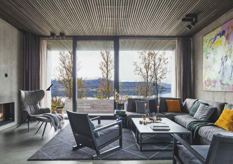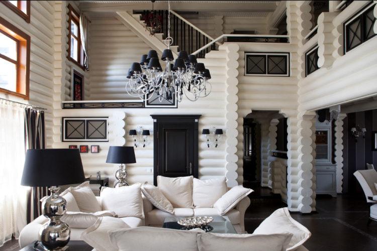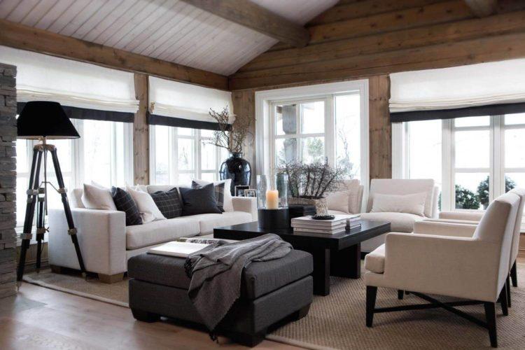 El interior de la casa de troncos es posible con detalles contrastantes en color negro carbón, tales detalles en combinación con un blanco deslumbrante se verán especialmente impresionantes.
