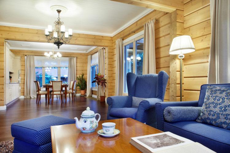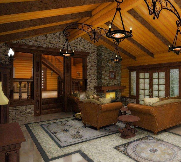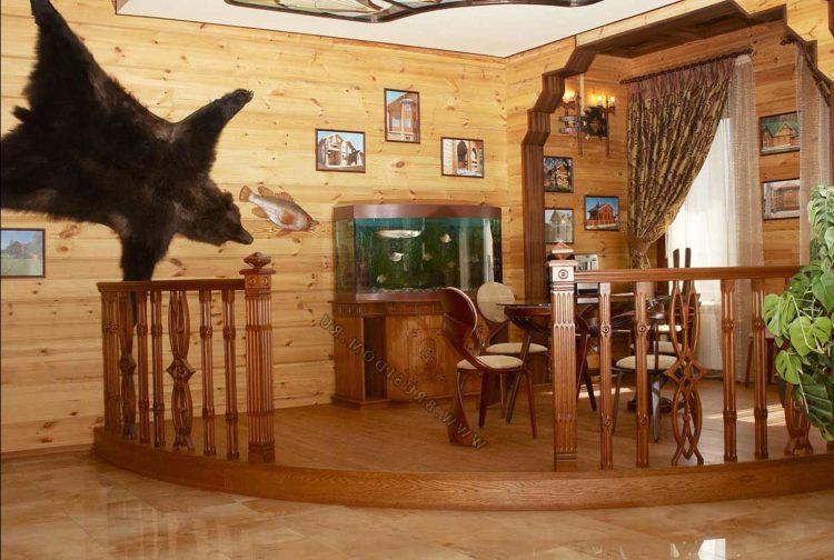 Las fotos de casas de madera son llamativas en su diversidad e imaginación ilimitada de diseñadores que logran combinar diferentes estilos. Al mismo tiempo, el interior de la casa en el interior, la foto en el estilo moderno que se ve, demuestra la naturalidad del material, por un lado, y la originalidad de los detalles elegantes por el otro. El interior de la casa de madera en el interior (las fotos se presentan en un surtido elegante) lo ayudará a navegar en una gran cantidad de opciones, pero lo principal es seguir su propio gusto, no sobrecargar la imagen general con demasiadas flores y muebles.