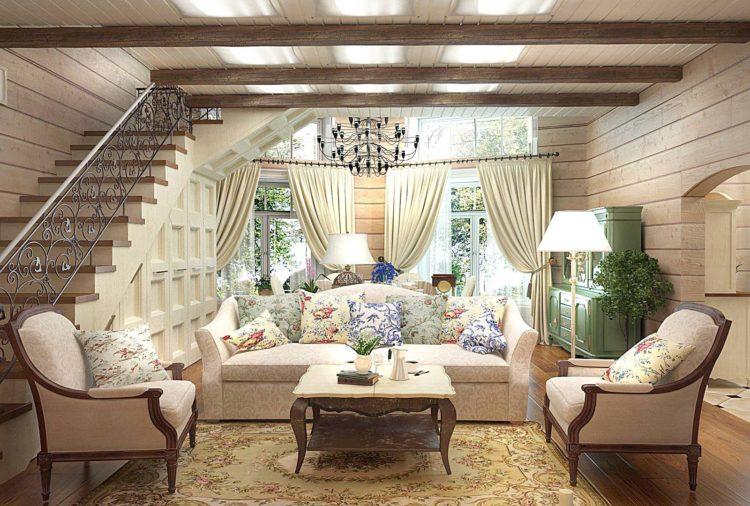 Sin embargo, la práctica muestra que el interior de una casa de pueblo en el interior (las opciones fotográficas brindarán la oportunidad de orientarse) no es necesario para realizar el mismo estilo. Una base de madera será un excelente telón de fondo para usar la imaginación del diseñador para combinar una variedad de motivos para todos los gustos. Una casa de madera, no importa, una pequeña cabaña o una mansión elegante, ayuda a una persona a sentir la unidad con la naturaleza, por lo tanto, cuando planifique el diseño de su hogar, piense en preservar la naturalidad del material. al maximo.