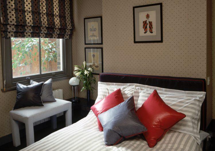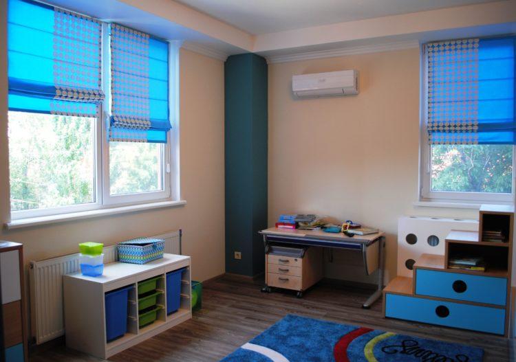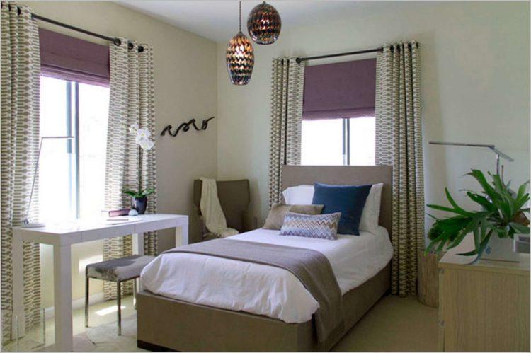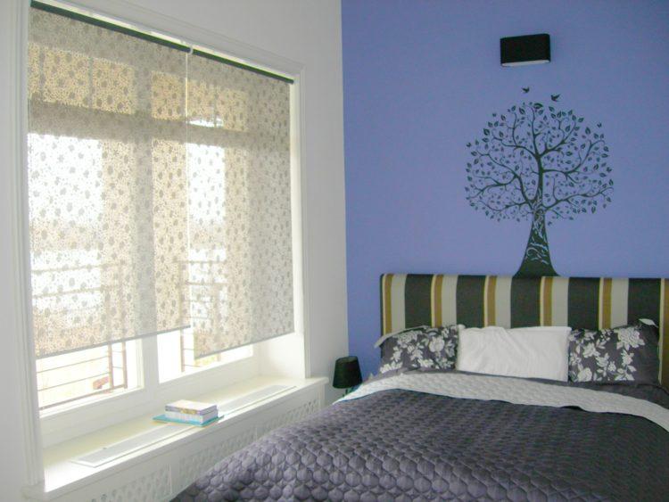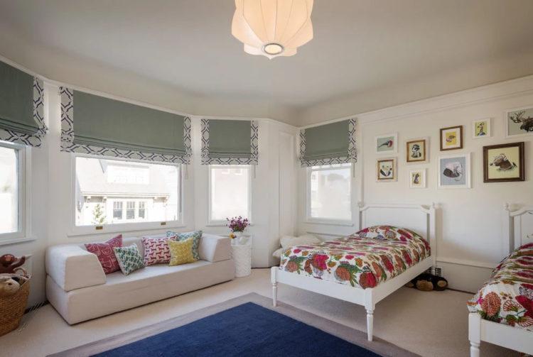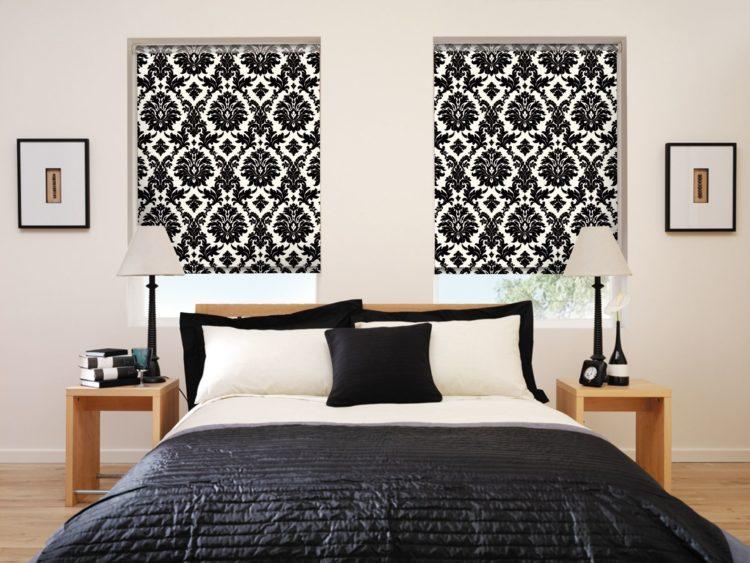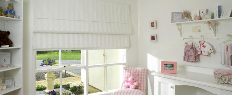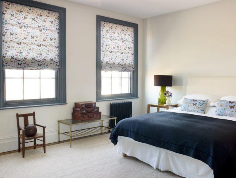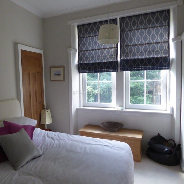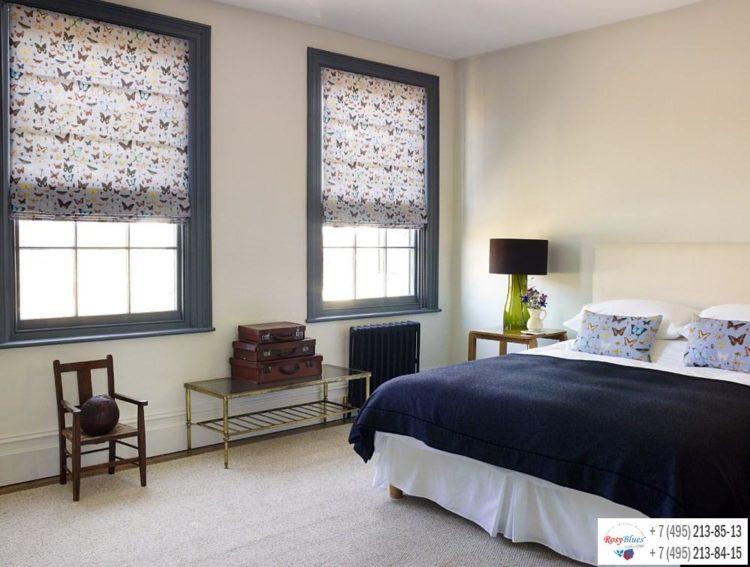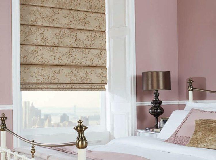 al contenido ↑Brillantes cortinas romanas en el dormitorio