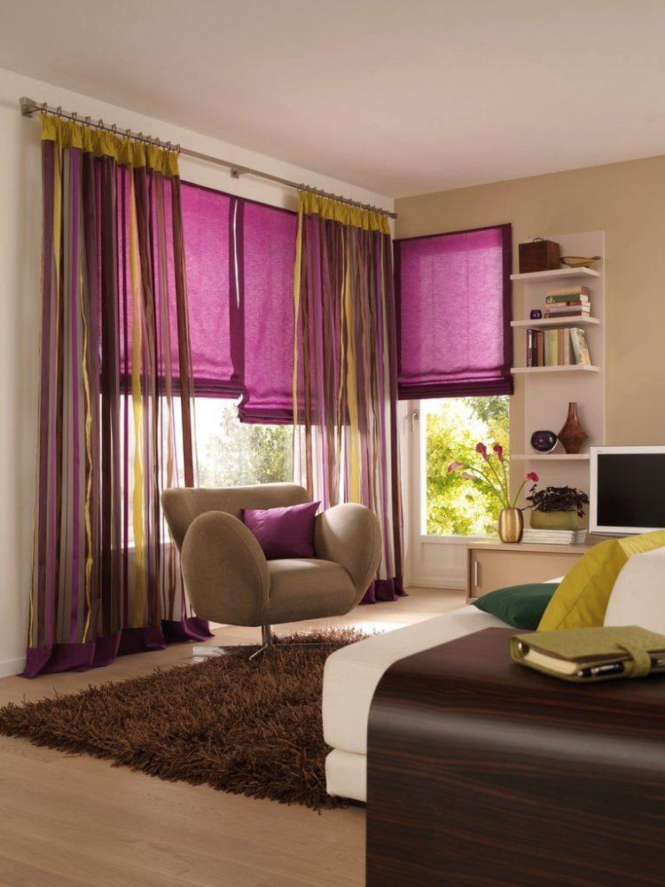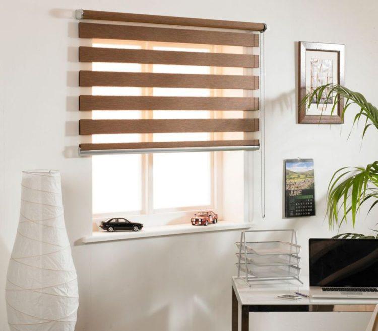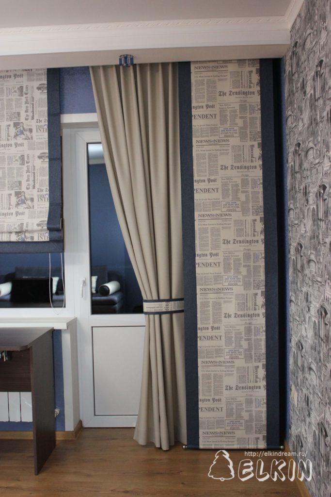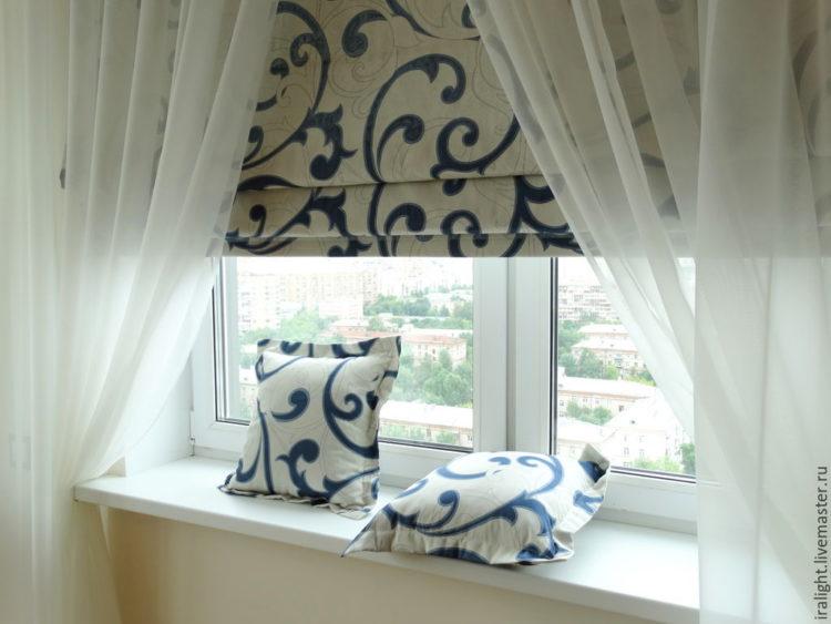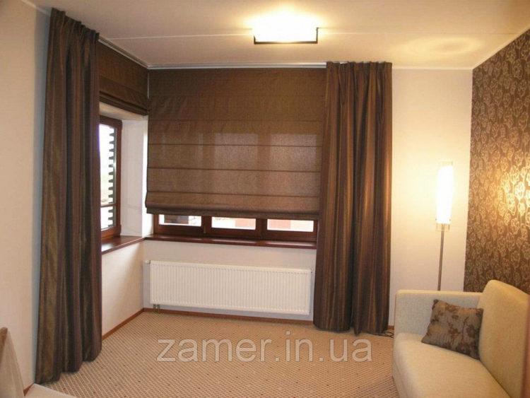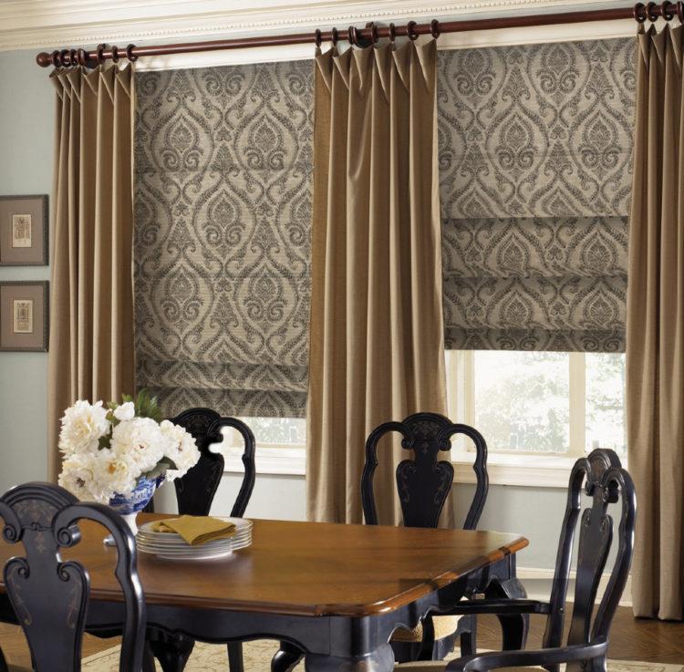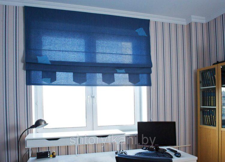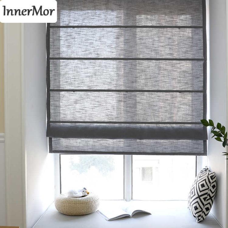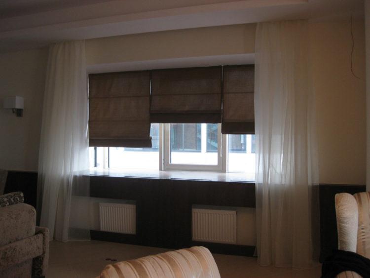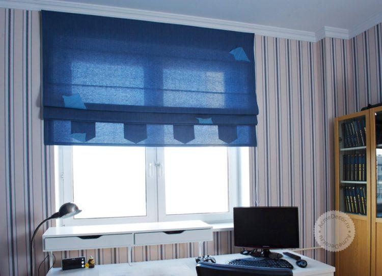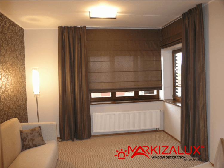 Para coser tales cortinas, puede tomar cualquier material denso. Al mismo tiempo, se ven geniales tanto en las ventanas del apartamento como en la oficina.