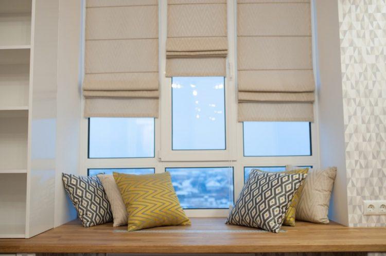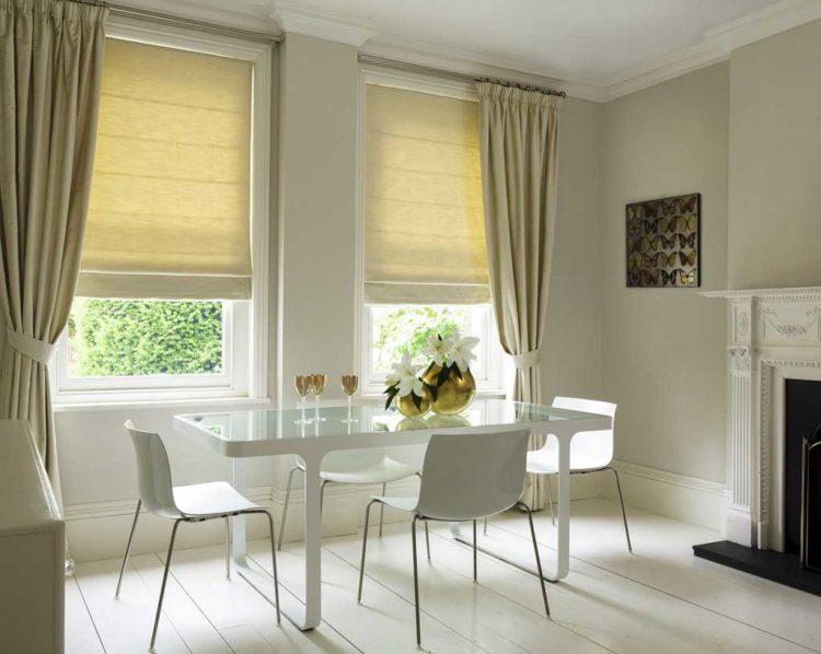 Ni siquiera pienses en cómo hacer cortinas romanas con tus propias manos en color beige. Cualquier maestro le ofrecerá el mismo precio que paga por una versión ya terminada. También notamos que las soluciones beige son perfectas para casi cualquier interior.