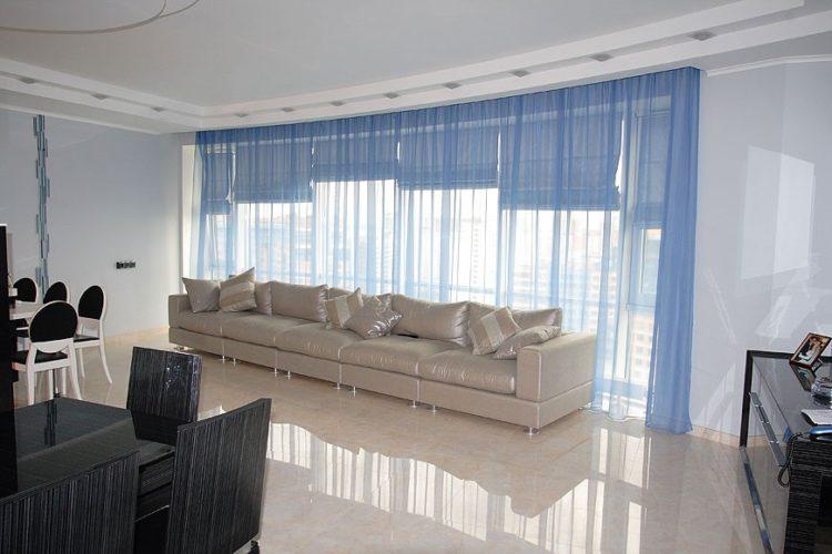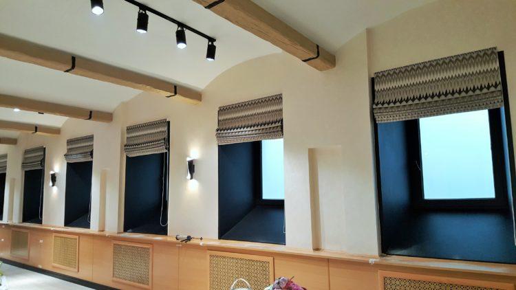 - Vistas oscuras de las cortinas romanas en las habitaciones.