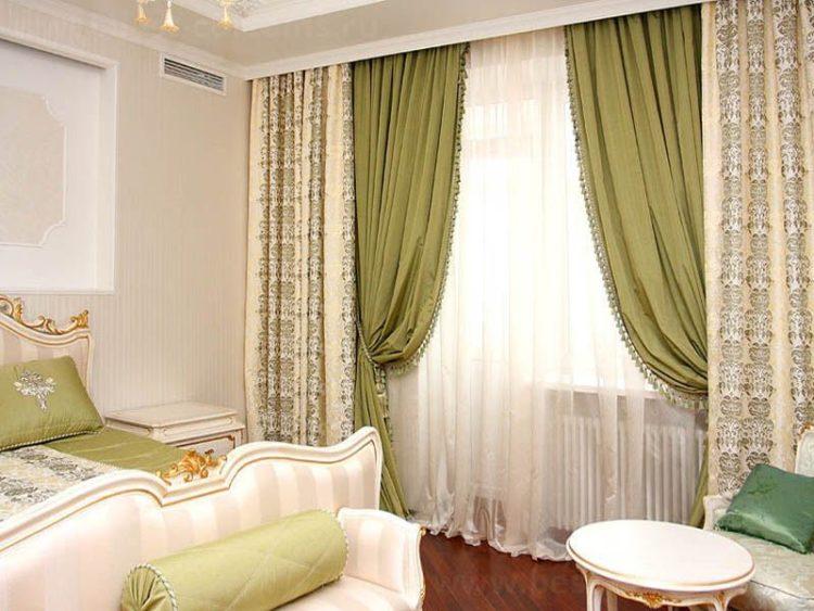 La variedad más interesante de productos textiles bajo consideración es la cortina verde. No solo es adecuado para varias habitaciones, sino que también crea una atmósfera especial fresca y productiva en ellas.