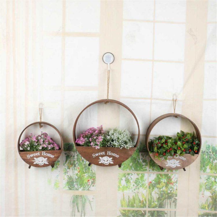 La maceta en la pared para flores en tonos verdes se ve muy fresca e interesante.