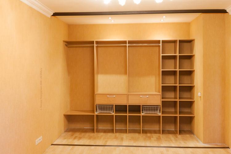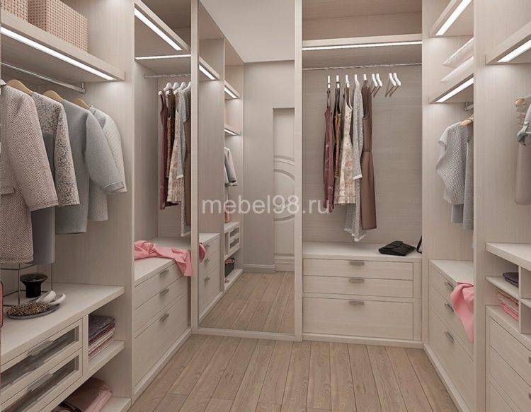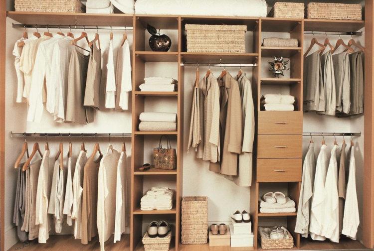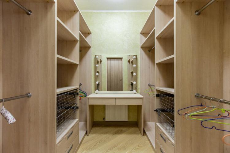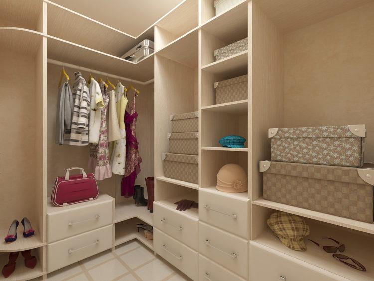 Tales tonos iluminan visualmente el interior del vestidor (a continuación se muestran ejemplos de fotos), lo cual es especialmente importante si el espacio está limitado por tamaños pequeños.