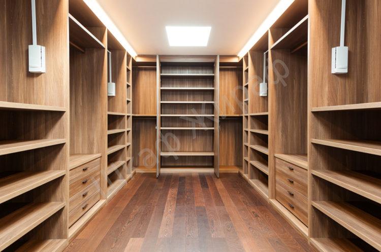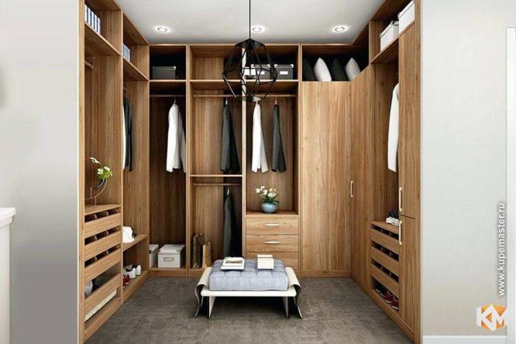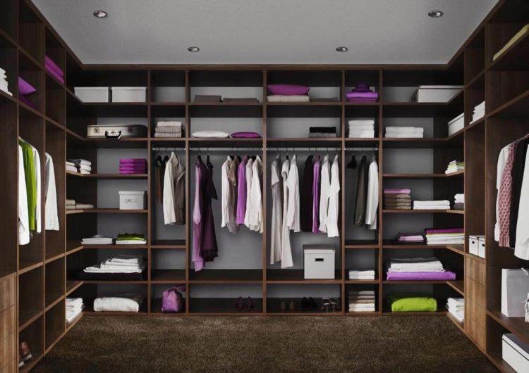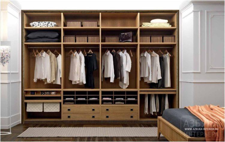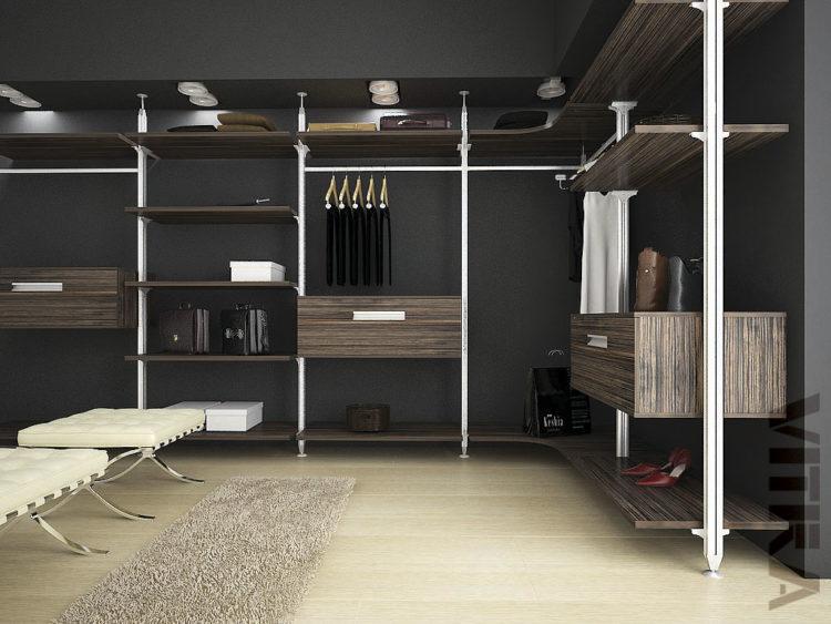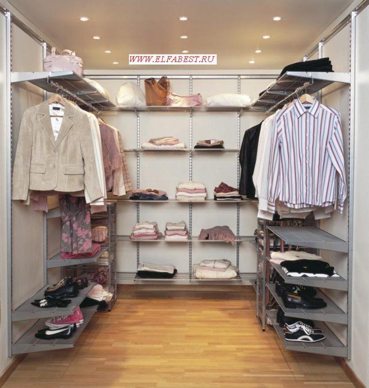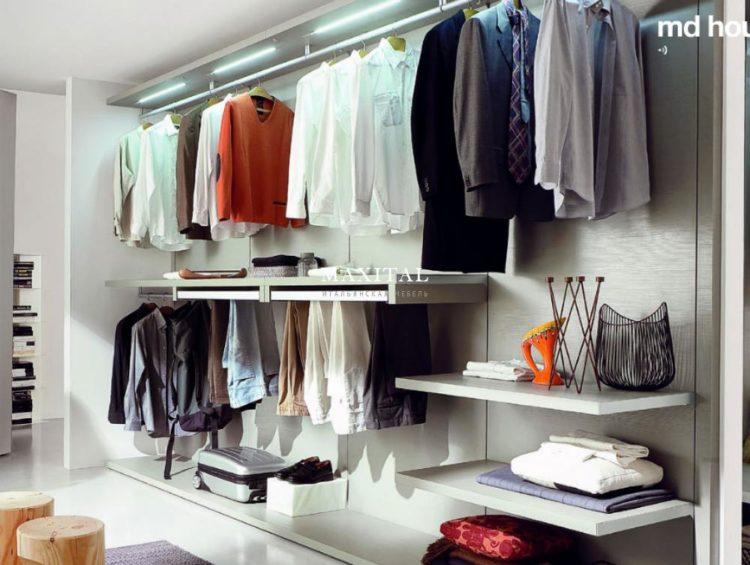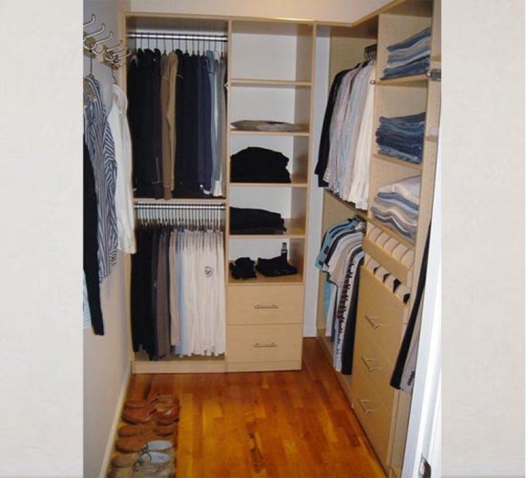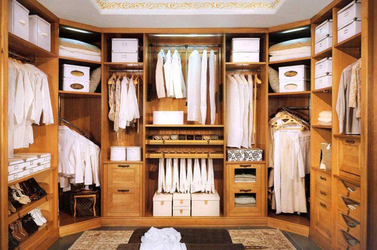 Una sala de armario rectangular, cuyo diseño está hecho en la solución estilística general de todo el apartamento, puede acomodar la cantidad requerida de estantes y gabinetes. Hay pequeños armarios, cuyo diseño demuestra que incluso un espacio pequeño ayudará a almacenar cosas en él. Para aquellos cuyo diseño de apartamentos no permite asignar una habitación, existe la posibilidad de crear un mini armario con sus propias manos, que encierra un par de metros de la habitación o sala de estar.