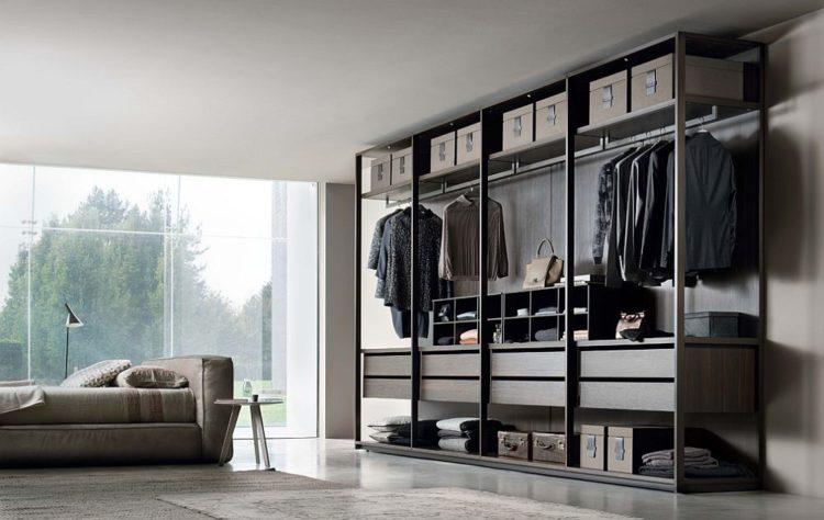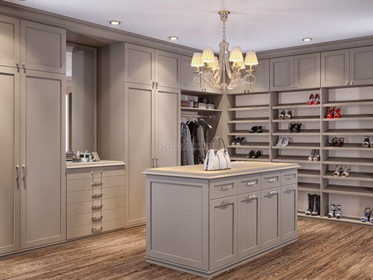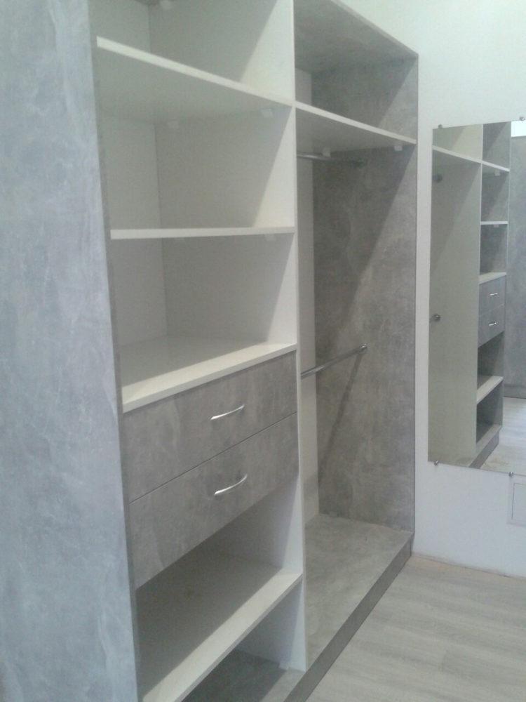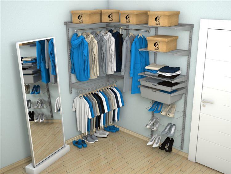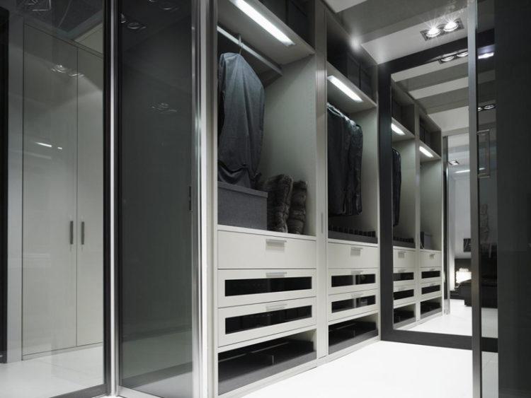 Mini vestidores rectangulares o cuadrados, cuyos proyectos de diseño reflejan qué tan bien se ve el tono gris en una habitación pequeña.