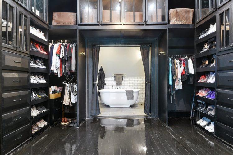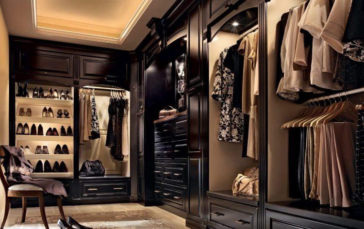 Vestido de negro, el vestidor es de 5 metros cuadrados, el diseño de la foto convencerá a cualquiera de que este tono agregará un estilo único a la habitación.