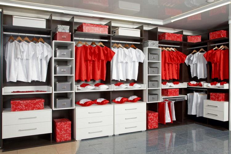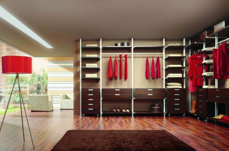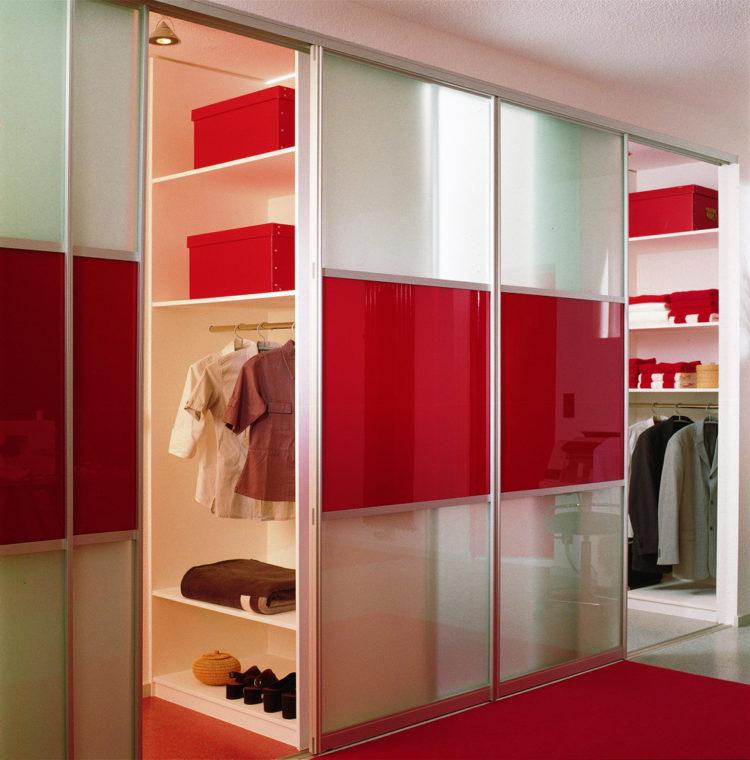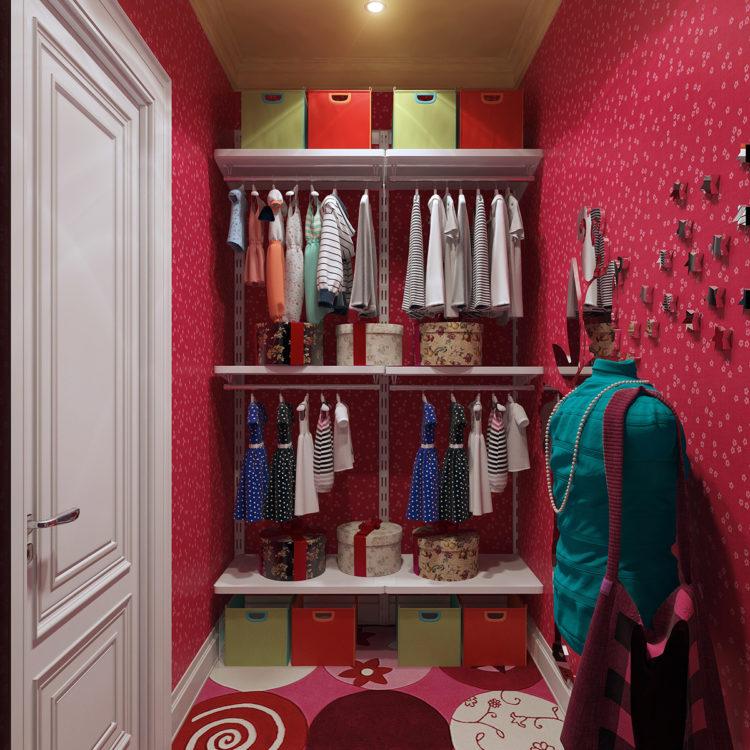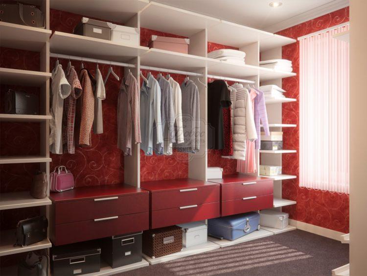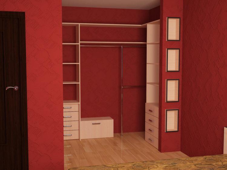 Un vestidor rojo de 2 metros cuadrados, cuyo diseño se muestra a continuación, agregará colores brillantes al interior del apartamento.