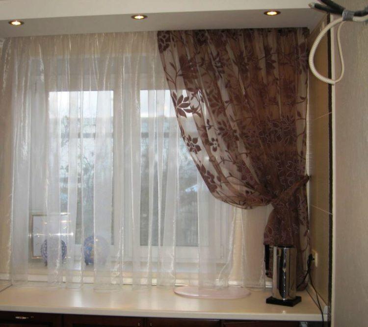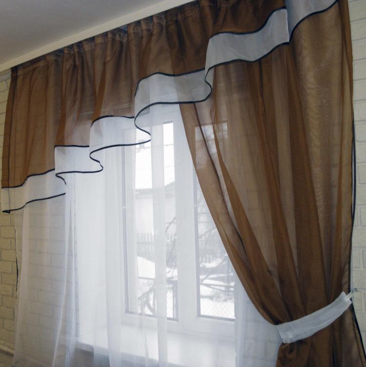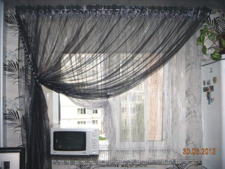 Foto de tul en la cocina se puede hacer en color oscuro. Tales tulles en la cocina (foto a continuación) se ven muy bien.