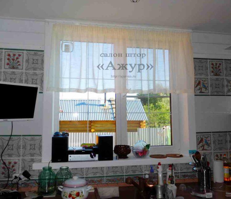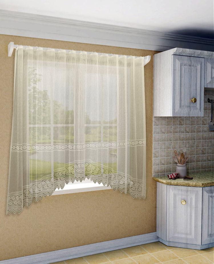 El tul corto para la cocina se puede hacer en tonos claros, si desea que la cocina sea luminosa y espaciosa. Puede ver el diseño de tul en la foto de tul en la cocina, que se presenta a continuación.