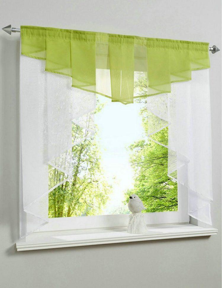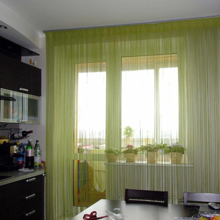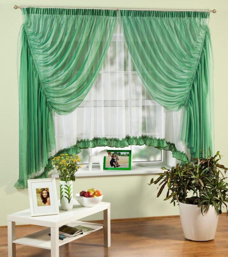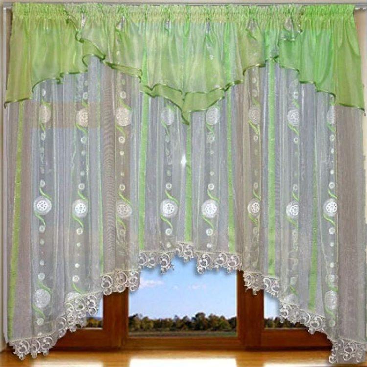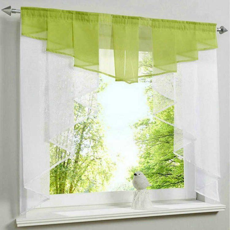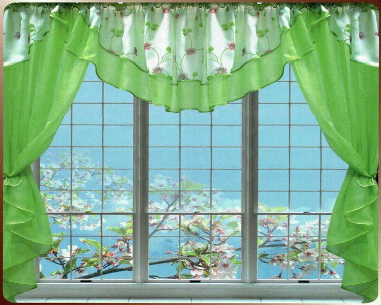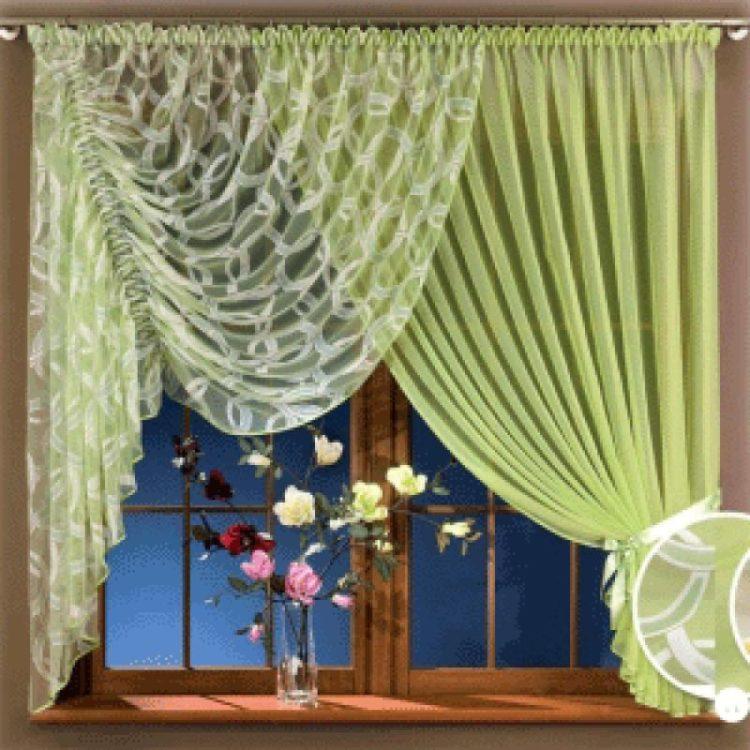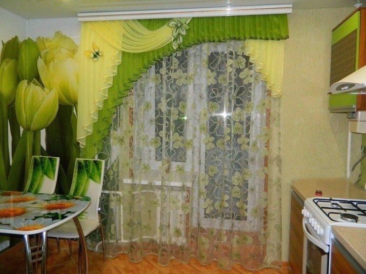 A menudo puedes encontrar hermosos tulles en verde. Por ejemplo, una cortina fotográfica para la cocina se verá muy bien en un tono verde claro.