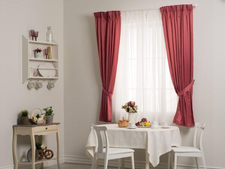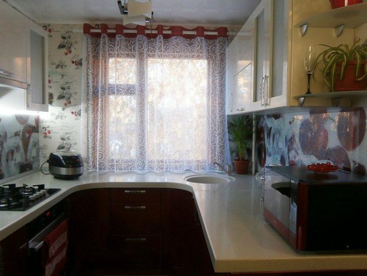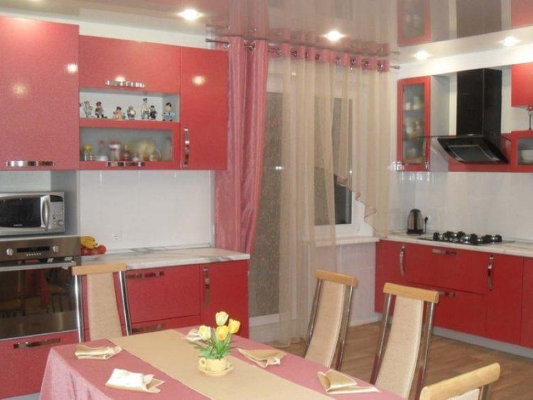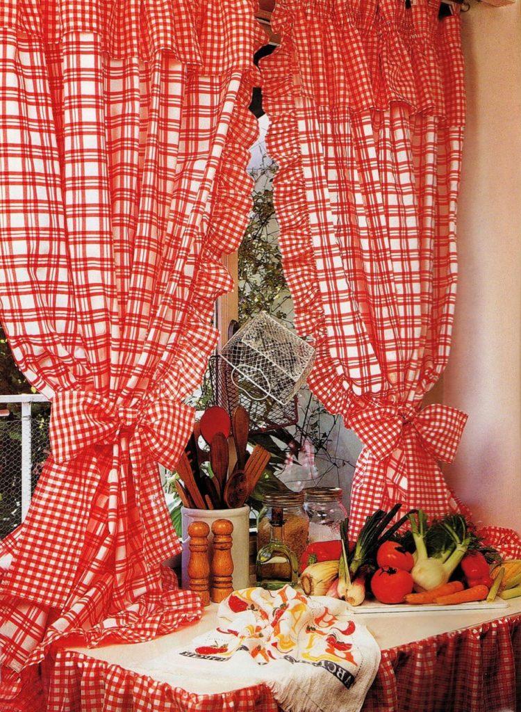 Un tul corto en la cocina se verá hermoso en rojo. Especialmente si toda la cocina es roja.