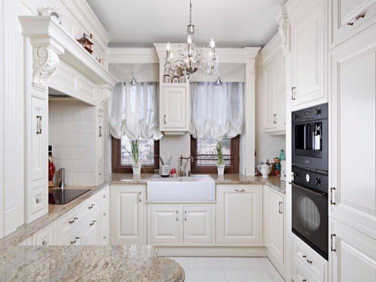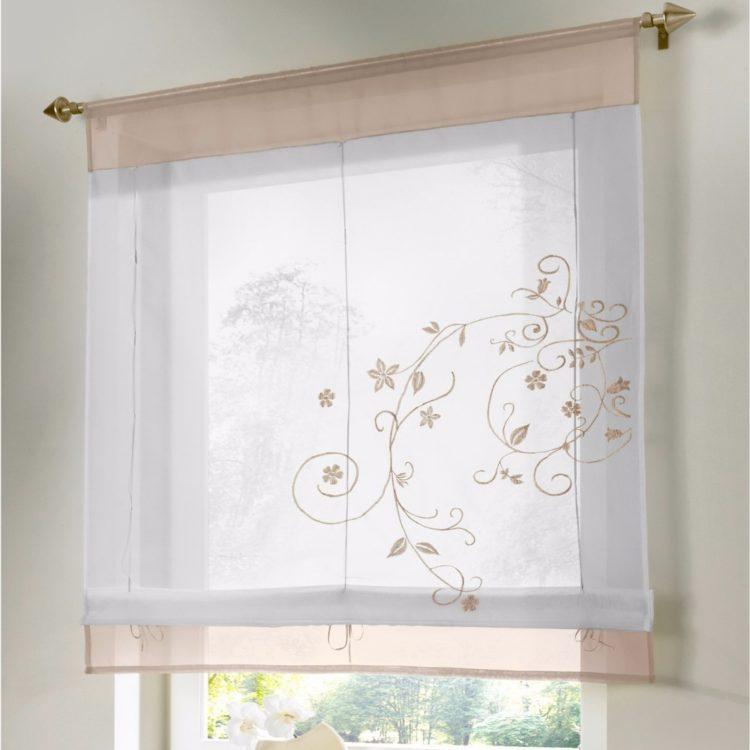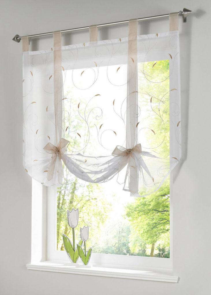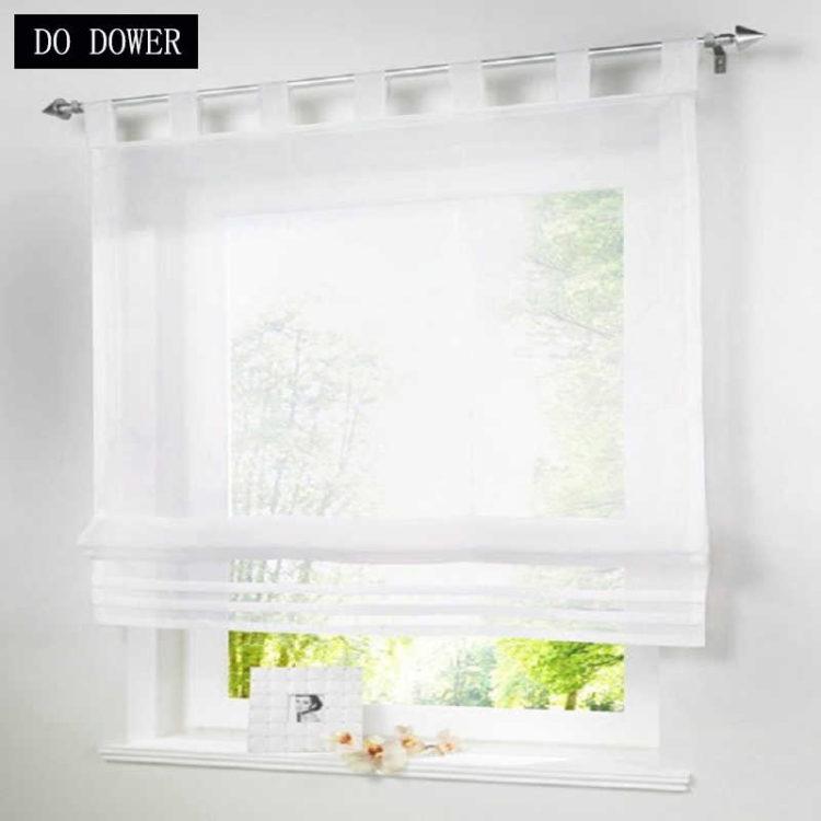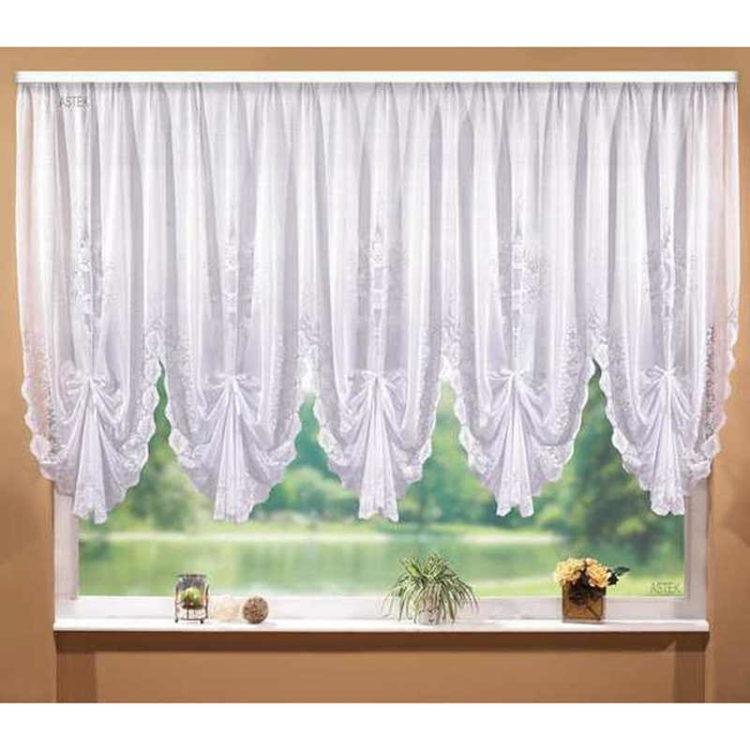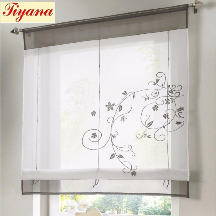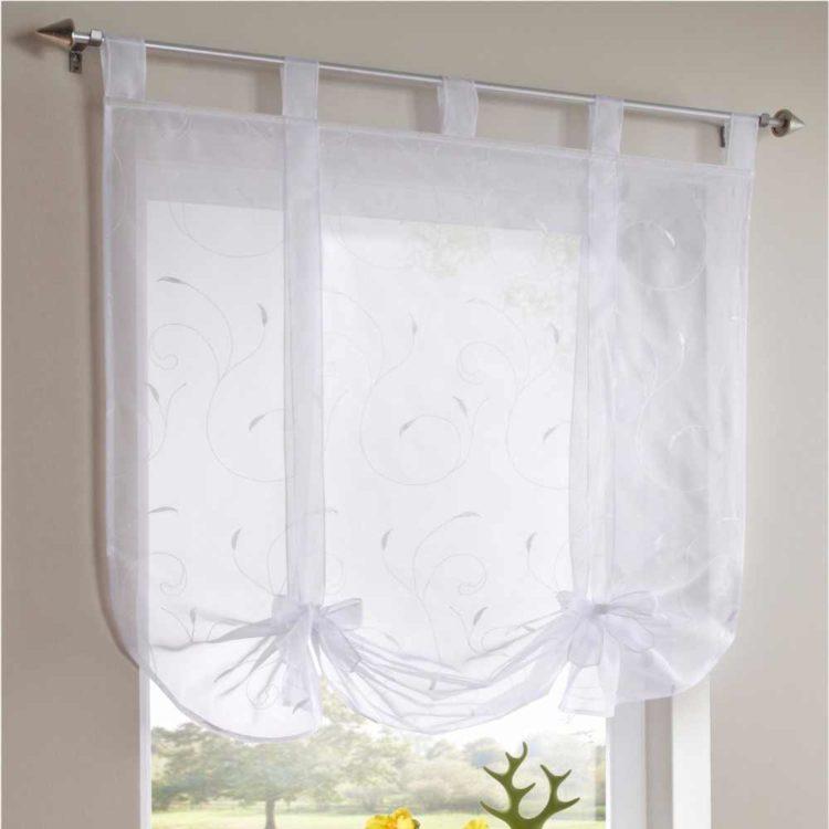 El diseño moderno de las cortinas se verá hermoso en blanco. Será fácil colgar tales cortinas en la cocina.