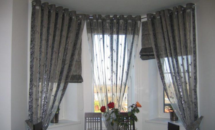 Los tul y las cortinas para la cocina (fotos, artículos nuevos e ideas a continuación) se pueden hacer en gris, si toda la cocina está hecha en blanco. Entonces, un hermoso tul también será elegante.