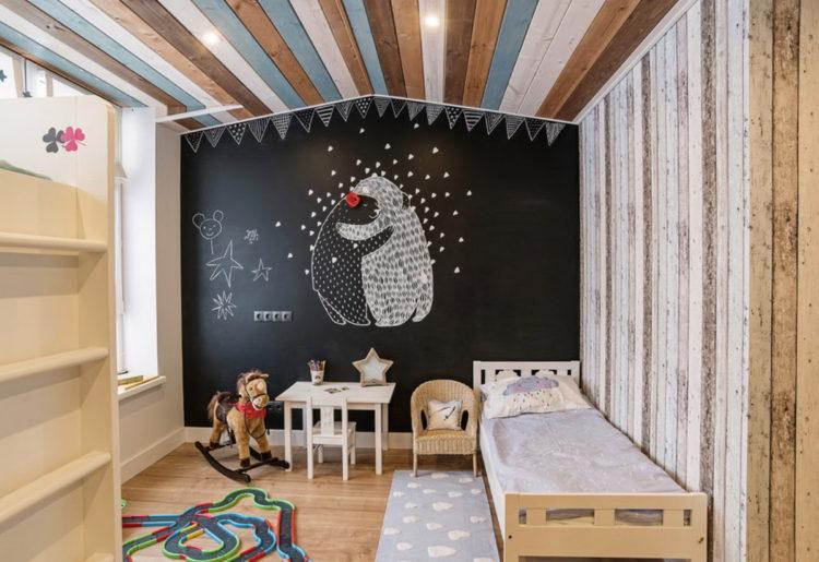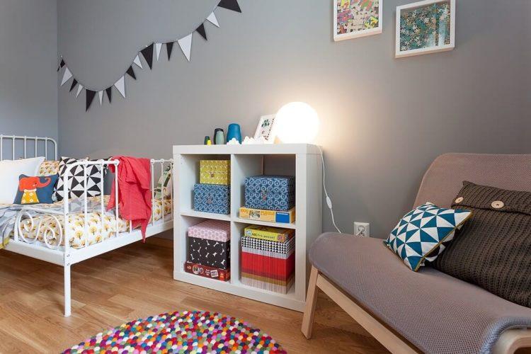 Si ha dividido en zonas una habitación infantil para dos personas, después de haber hecho una zona para adultos y otra para niños, puede hacer un diseño oscuro del piso o detalles individuales (muebles, decoraciones). Completar todo con colores oscuros es indeseable, especialmente en la sección infantil.