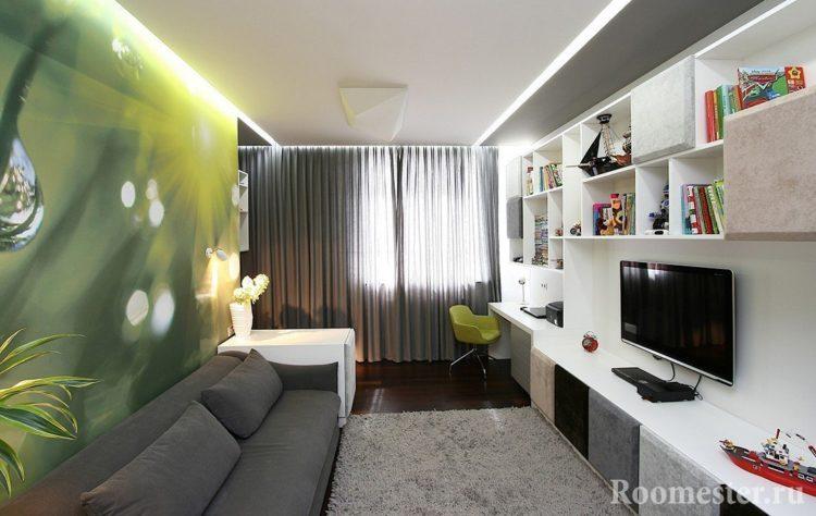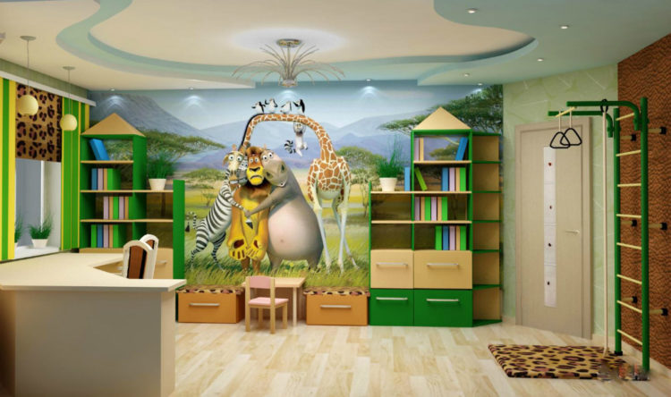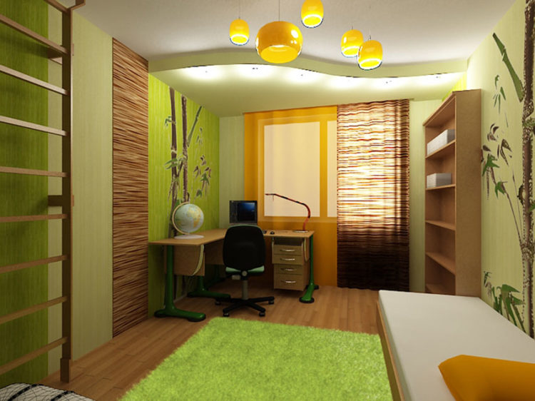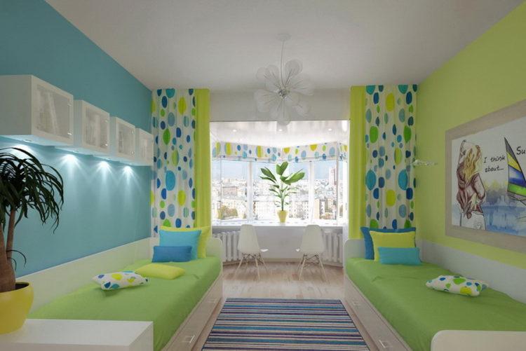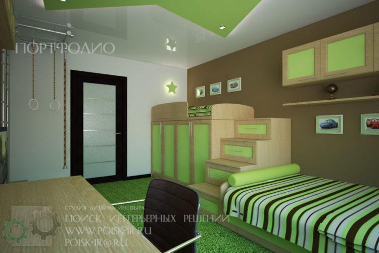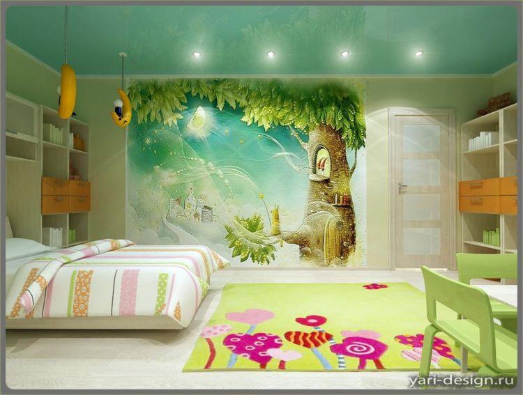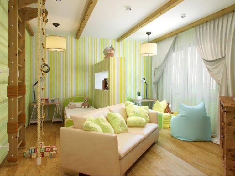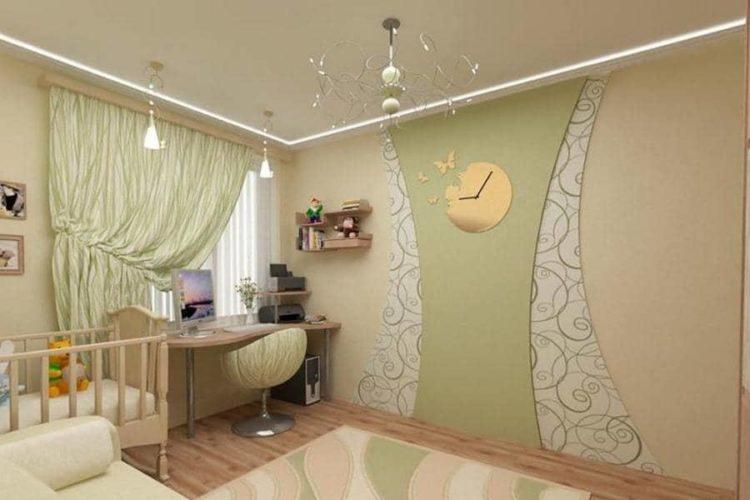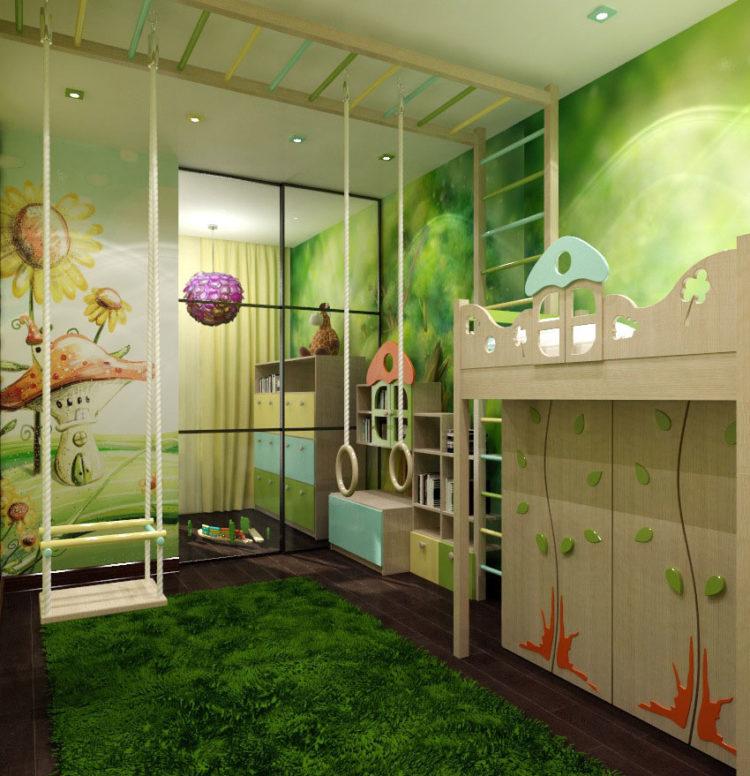 Así es como se puede ver una habitación infantil (diseño fotográfico en un apartamento, real) en verde. Puede elegir cualquier tono, pero lo principal es que no es demasiado brillante y saturado.
