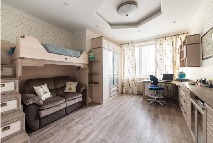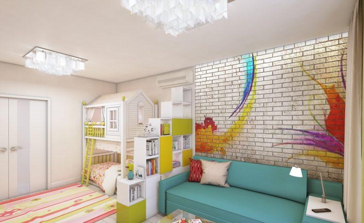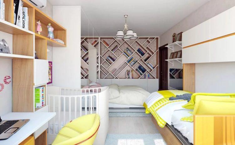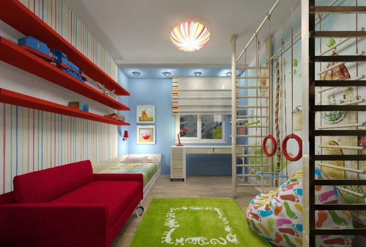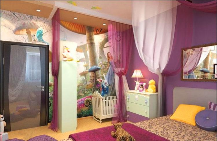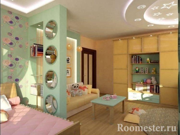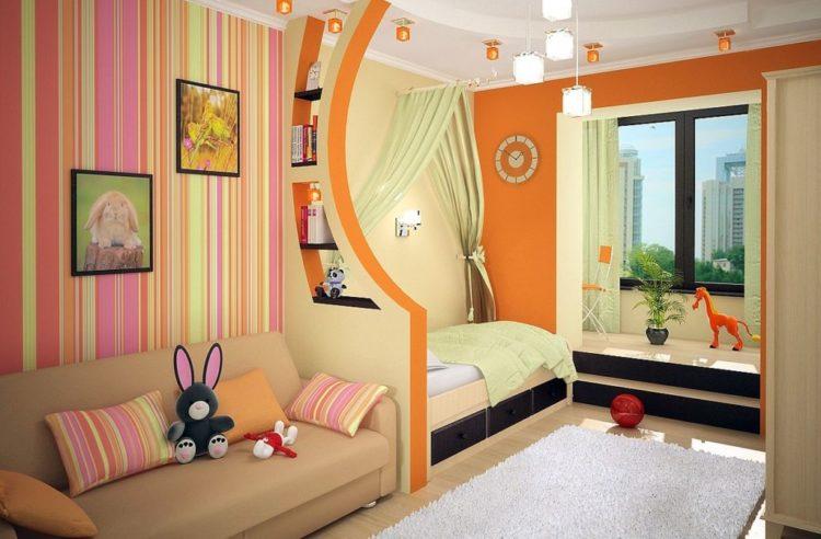 Presentamos a su atención otras 100 fotos, que muestran una variedad de opciones para la habitación de los niños y la sala de estar en una habitación y una amplia variedad de soluciones de diseño y esquemas de color. Además de opciones para dividir un vivero en dos zonas.