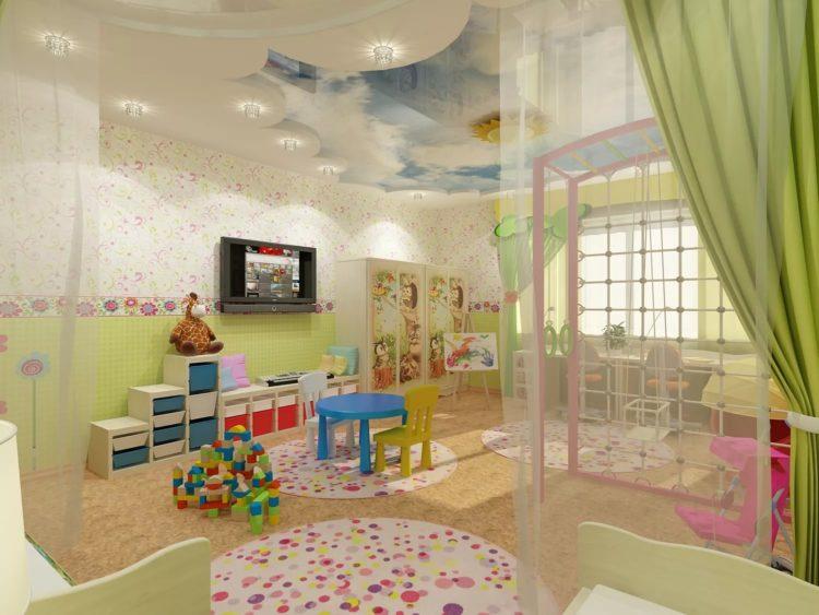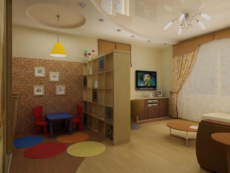 La versión combinada de la guardería y la sala de estar puede verse de la manera más diversa. Todo depende del diseño de la habitación, el área ocupada y el tipo de zonificación. Vale la pena recordar lo siguiente: una alternancia caótica de colores traerá mal gusto al hogar en lugar de un interior de moda en la zonificación del territorio.