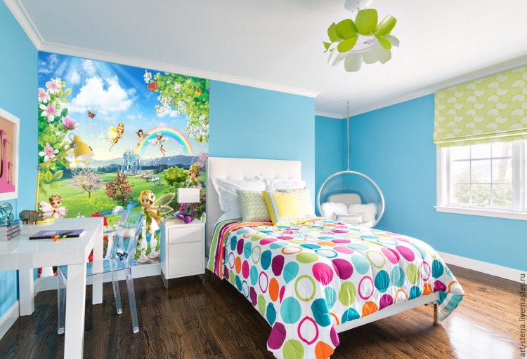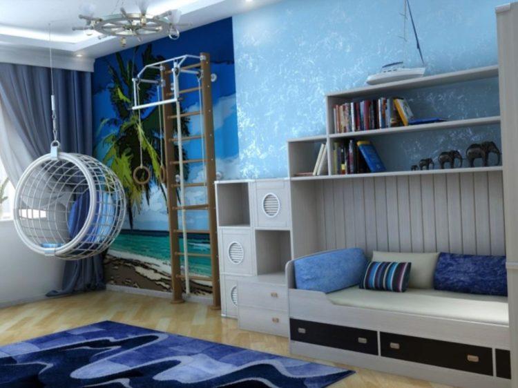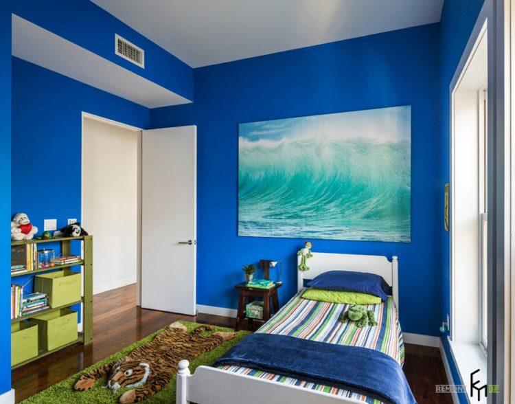 El color azul alivia el estrés.Una sala de estar completa no debe estar decorada en ese color: deprime el estado de ánimo y se hunde en la oscuridad. Un niño de cualquier edad no se sentirá cómodo en un espacio oscuro. Se recomienda resaltar detalles interiores individuales.