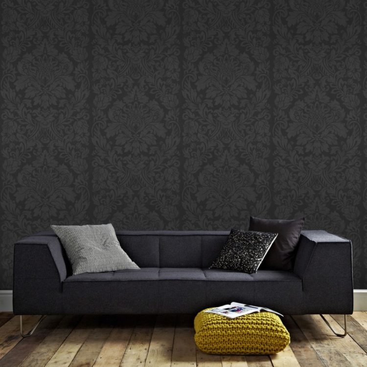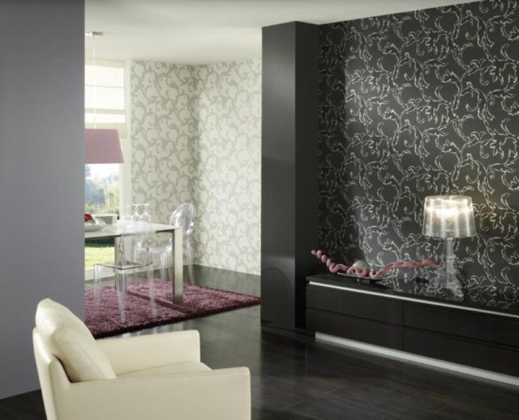 Es mejor no elegir el negro como color principal si planea pegar el fondo de pantalla en una habitación de dos colores, a continuación se presentan fotos de las mejores opciones. Son ideales para insertos. Además, el diseño de papel tapiz negro en la habitación se puede combinar con casi cualquiera de los tonos anteriores de diferentes colores.