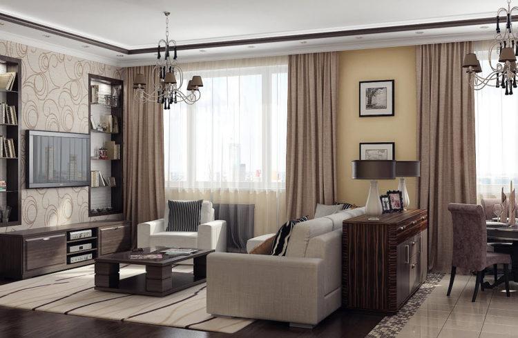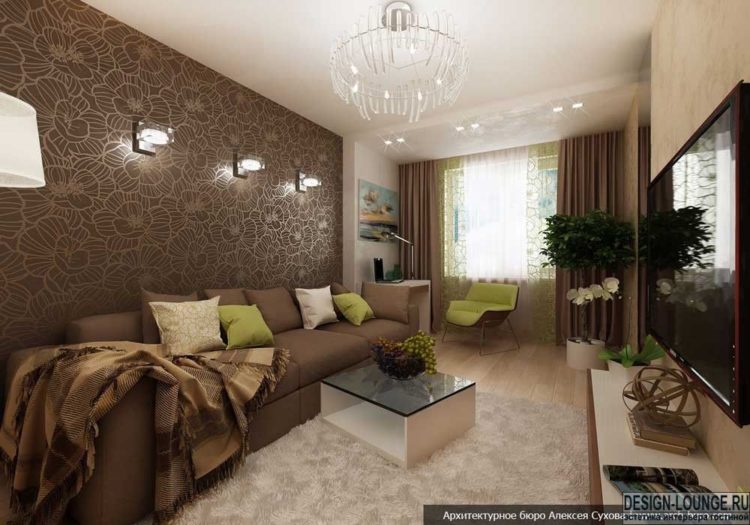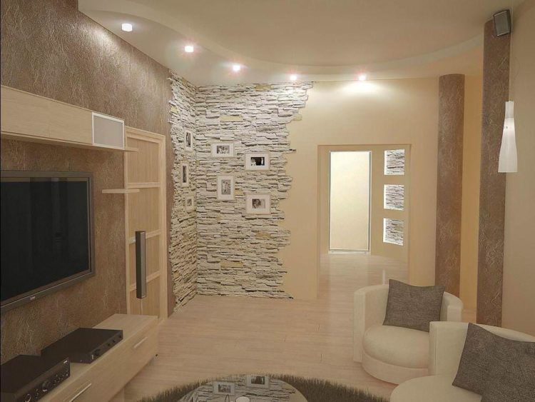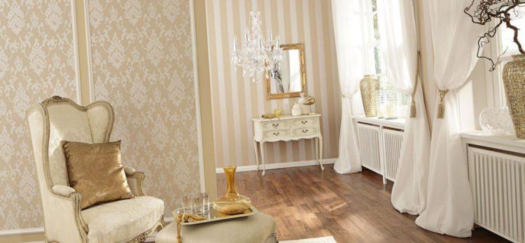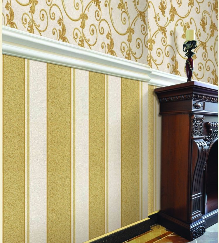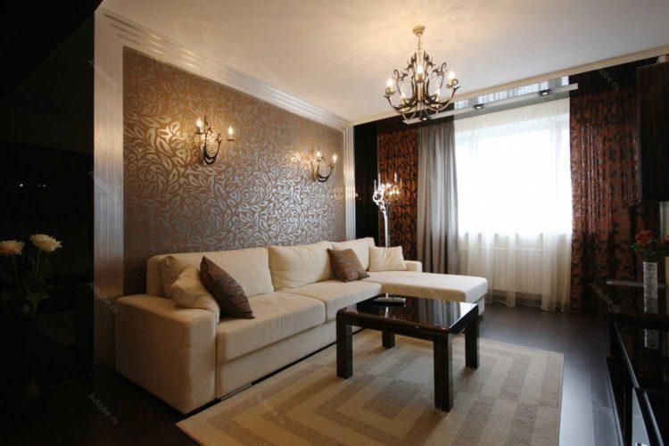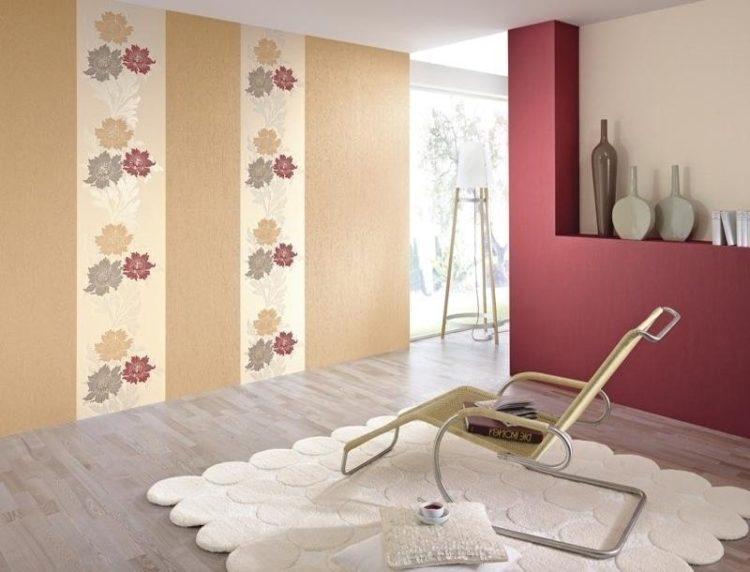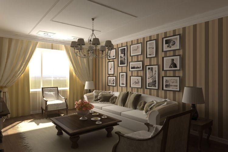 - Combinación beige de papel tapiz en dos colores (foto en la sala de estar)
