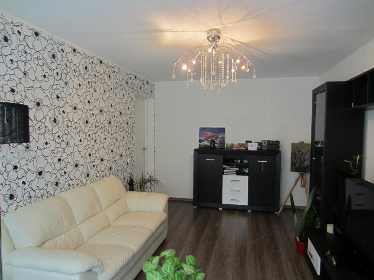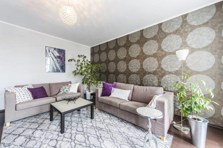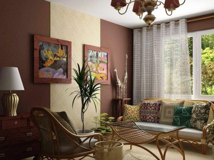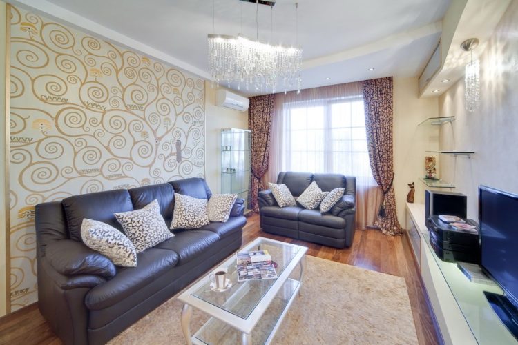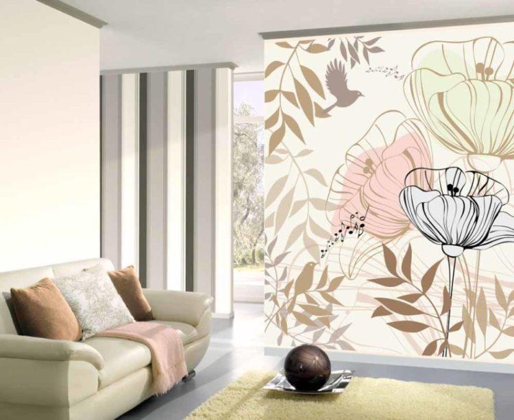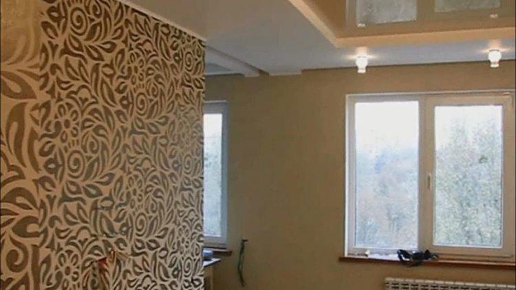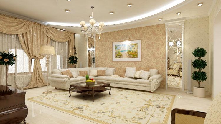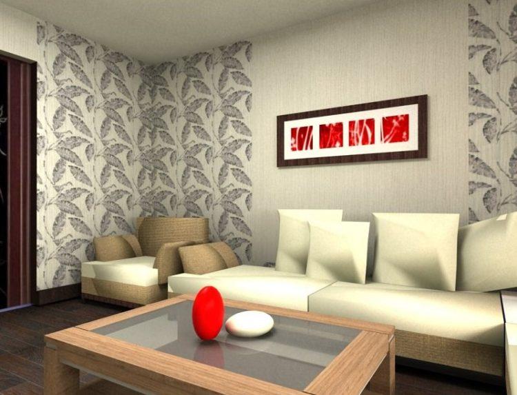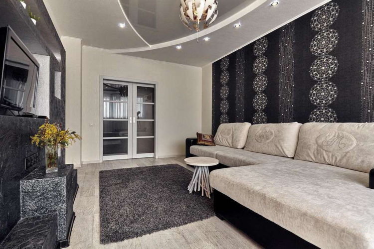 - Combinación beige de papel tapiz en dos colores (foto en la sala de estar)