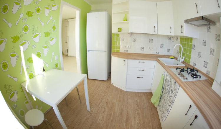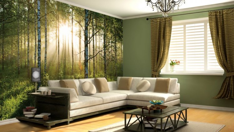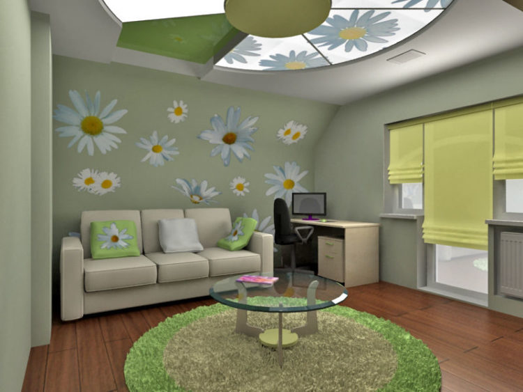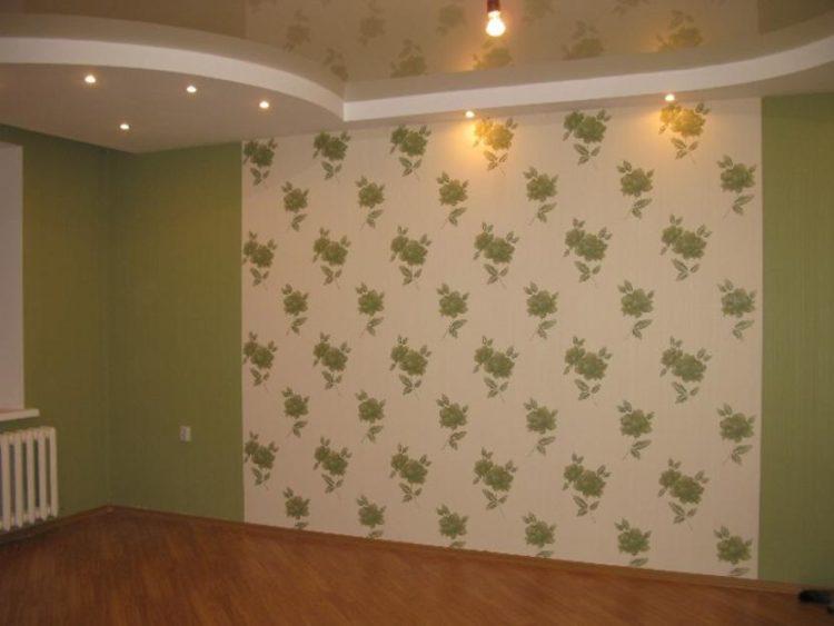 Los diferentes papeles pintados en las paredes de la habitación de un niño pueden ser del mismo color, por ejemplo, en verde. En este caso, al elegir los colores del fondo de pantalla, puede combinar el verde habitual y el fondo de pantalla del mismo tono, pero con dibujos. Por lo tanto, podrá crear opciones de instalación originales para una habitación, como una sala de estar. Además, pegar de manos de profesionales lleva 1 día.