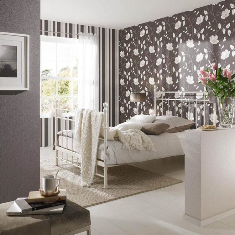 Combinación oscura de papel tapiz de dos colores, foto en el dormitorio